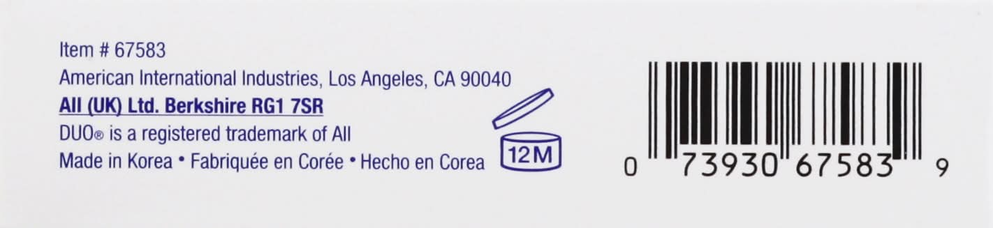Dries clear. Formaldehyde free. Long-lasting. Water resistant. Latex free. Silicone applicator. New. Sets in seconds. Further information included. duoadhesives.com. (hashtag)duoadhesive. (at)duoadhesive. Facebook. Pinterest. Instagram. YouTube. Join our beauty network. duoadhesives.com. Made in Korea.