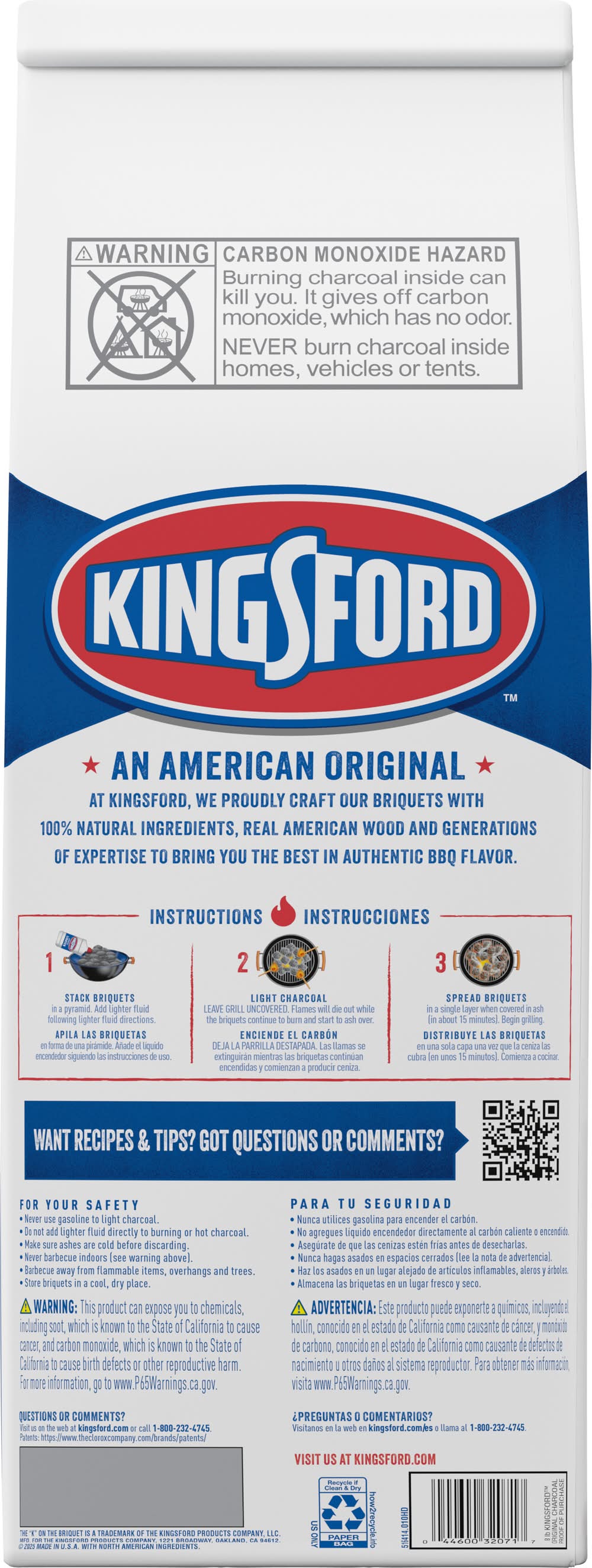Bring people together and make any meal an event with Kingsford Original Charcoal Briquettes. Designed with the breakthrough technology of Sure Fire Grooves, Kingsford Original Charcoal Briquettes have more edges for fas WARNING: This product can expose you to chemicals including soot, which is known to the State of California to cause cancer, and carbon monoxide, which is known to the State of California to cause birth defects or other reproductive harm. For more information, go to www.P65Warnings.ca.gov. • The Kingsford Products Company, 1221 Broadway, Oakland, CA, 94612 • Packaging: Reusable