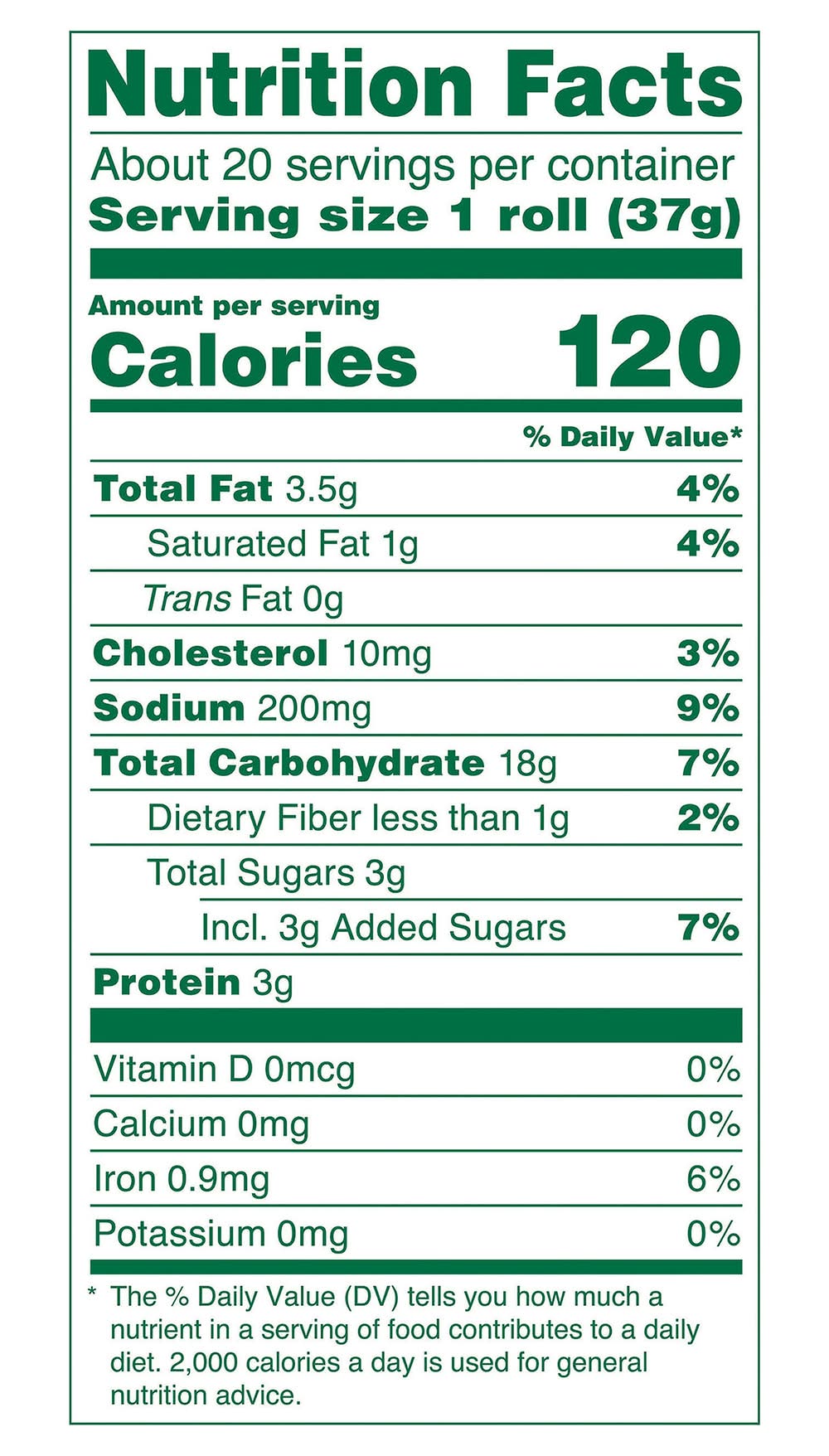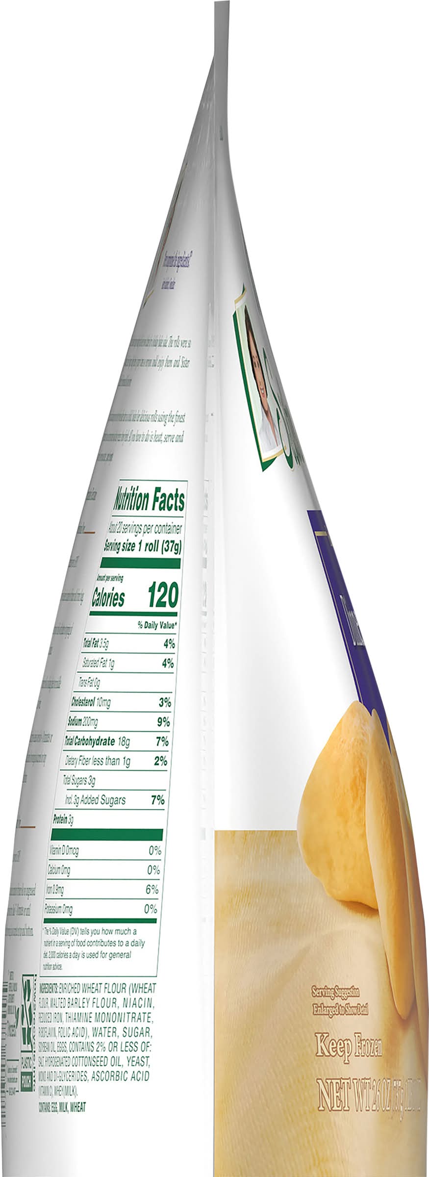 Directions for use: Directions: Preparation Directions: Conventional Oven: Preheat oven to 350 degrees F. Remove desired number of frozen rolls from bag. Brush tops of rolls with butter or topping of your choice. Place frozen rolls on baking sheet on middle rack of oven. Heat in pre-heated oven for 6-10 minutes or until desired browning has occurred on top and bottom. Toaster Oven: Preheat oven to 350 degrees F. Place desired number of frozen rolls on ungreased toaster oven tray. Bake 7-10 minutes or until desired browning has occurred on top and bottom. Keep frozen. Storage recommendation: Keep frozen.