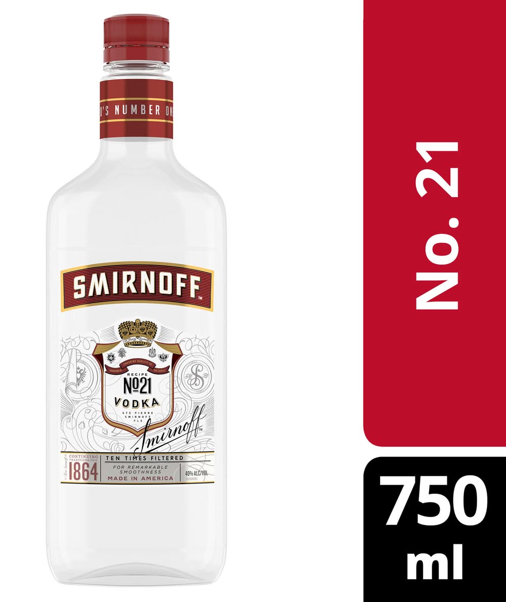 Holding the title of the World’s No.1 Vodka, Smirnoff No. 21 offers a distinct dry finish, with unparalleled smoothness and clarity. Each bottle proudly carries Kosher certification, and the liquor is crafted without gluten. Triple distilled and 10 times filtered using Smirnoff's multiple column filtration method, this award-winning vodka stands out for its refined taste. Savor it neat or enjoy it as the backbone to your favorite cocktail. Please enjoy responsibly. • Alcohol by volume: 40% • Packaging: Reusable