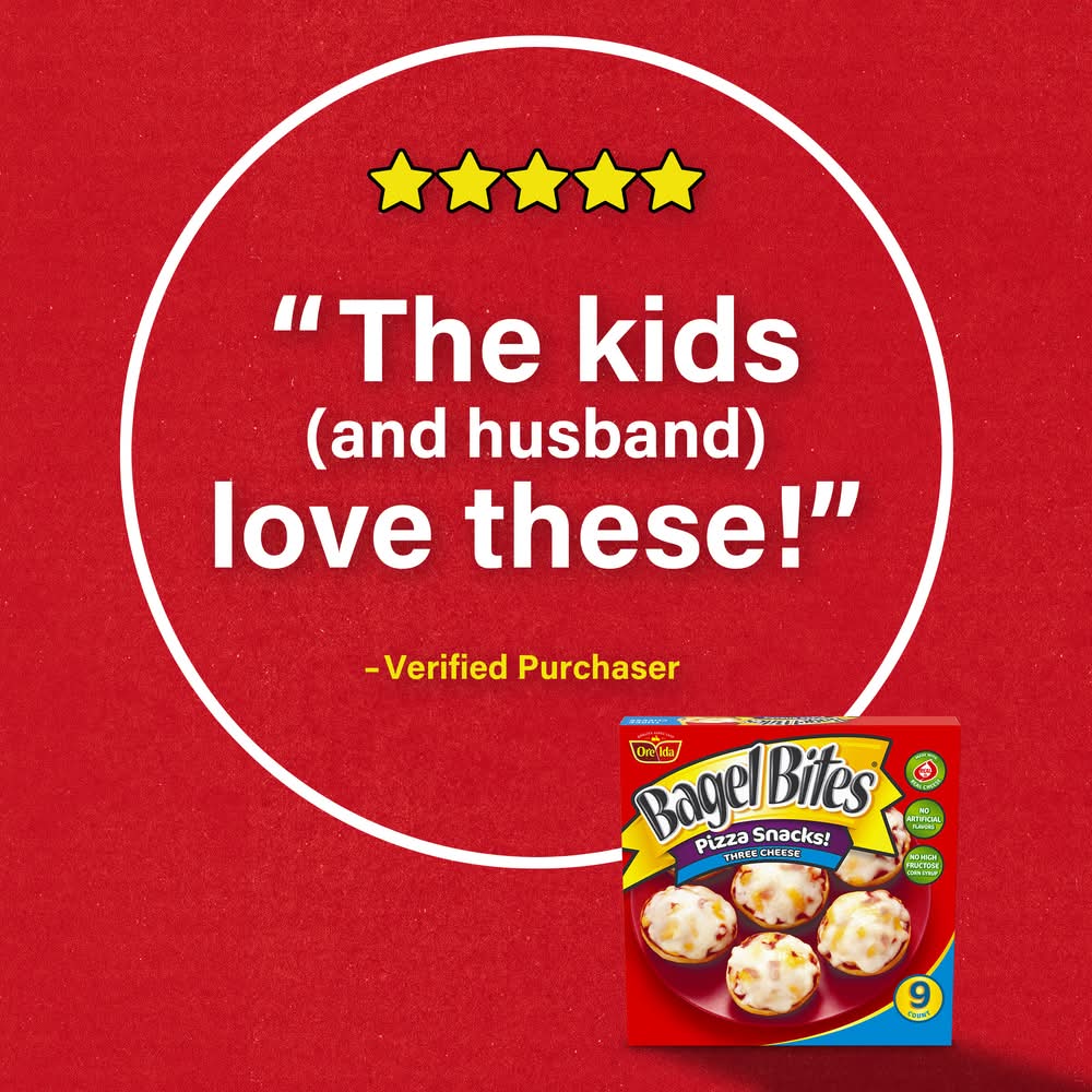 Bagel Bites Three Mini Pizza Bagel Snacks, Cheese (7 oz, 9 ct)