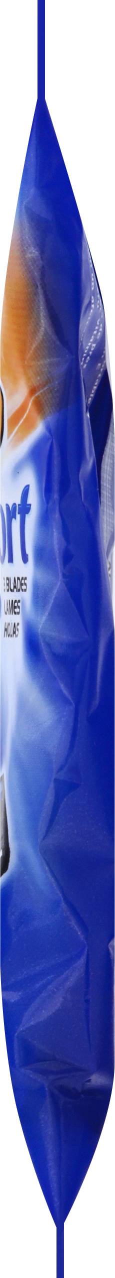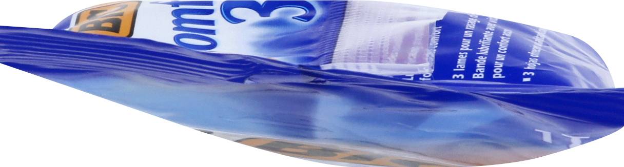 3 blades for a comfortable shave. Sensitive skin. 3 blades provide a close, comfortable shave. Lubricating strip with vitamin E for added comfort. BIC Performance Policy (US and Canada): If not fully satisfied, return to BIC for product replacement. www.bicworld.com. Made in Greece. BiC,