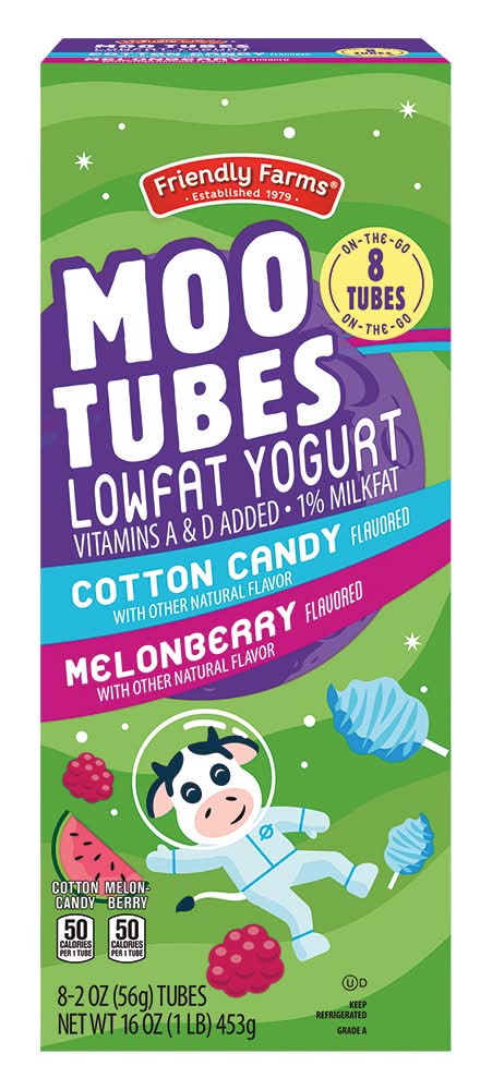 Friendly Farms Moo Tubes Lowfat Flavored Yogurt, Cotton Candy-Melonberry (8 x 2 oz)