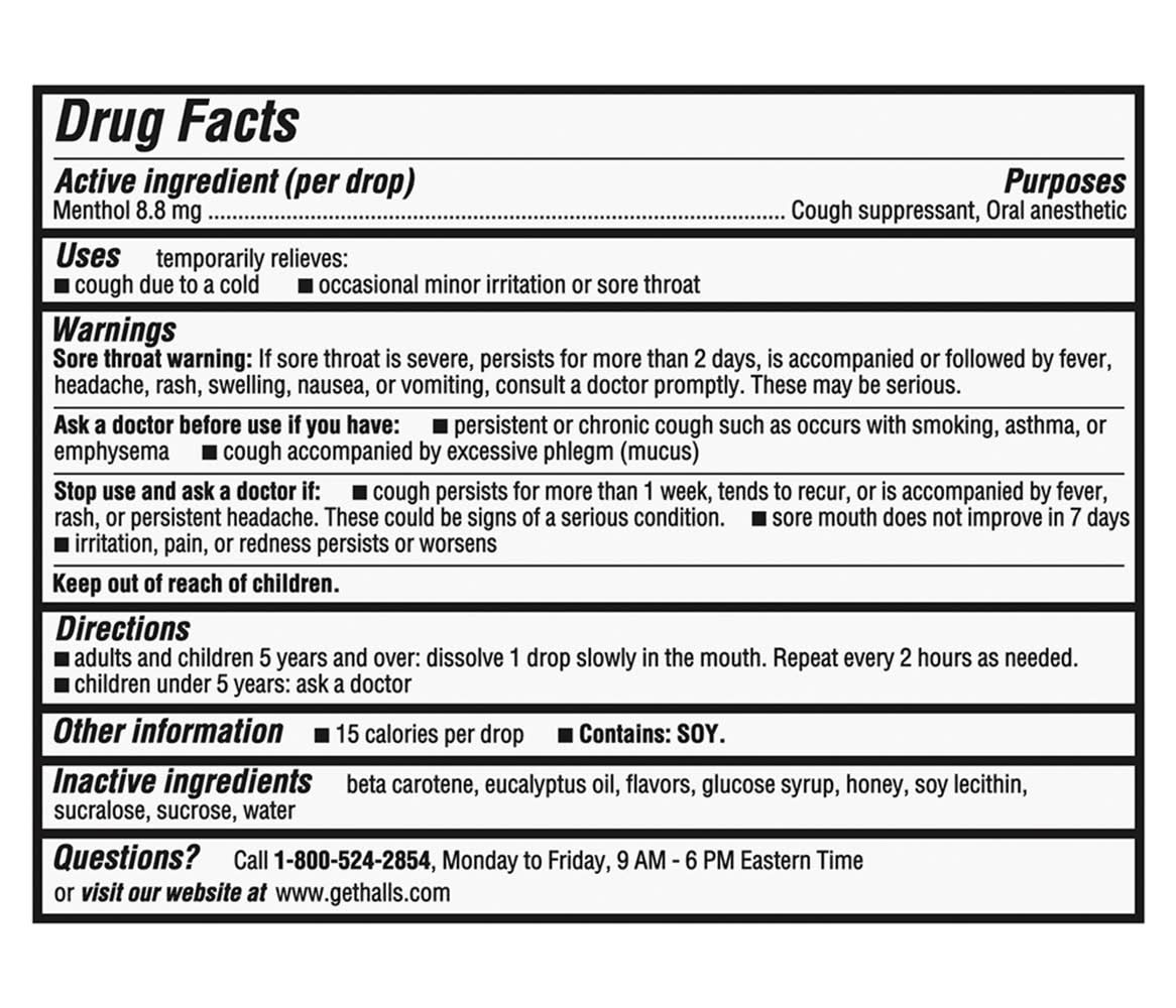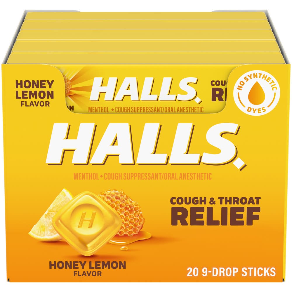 HALLS Relief Honey Lemon Cough Drops are ready for whatever life throws, or coughs, your way. With 8.8 mg of menthol per drop, these throat lozenges relieve coughs, soothe sore throats and cool nasal passages to relieve your worst symptoms. This effective cough suppressant comes in a refreshing yet soothing honey lemon flavor. Whether you're using HALLS cough drops for sore throat relief, cough relief or as an oral anesthetic, simply dissolve one drop in your mouth slowly, and repeat every two hours as needed. HALLS Relief cough drops are formulated for adults and children five years and older. Each stick holds 9 drops so you can easily toss it in your bag or travel pack for convenient access when symptoms strike. It is also a perfect inclusion in a special gift or care package. Mondelez,