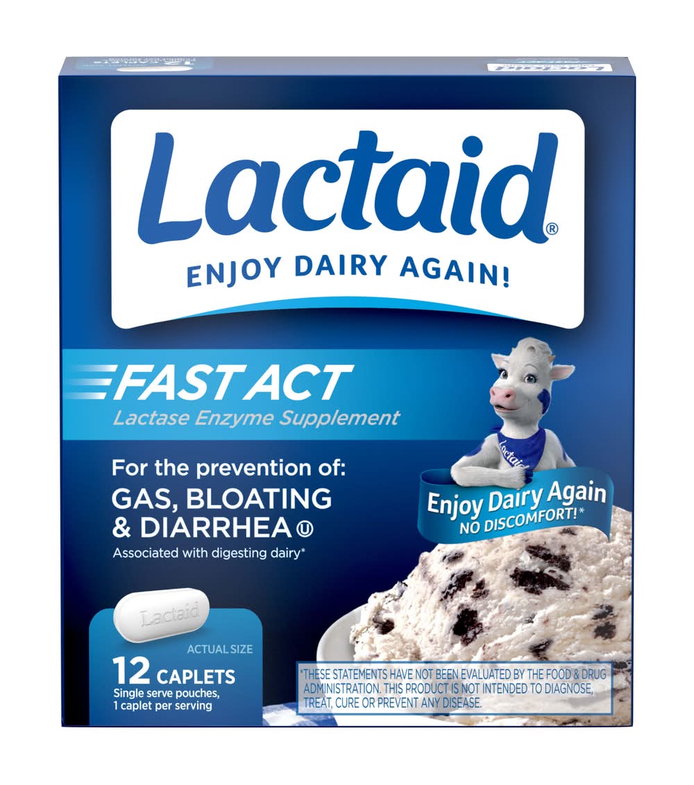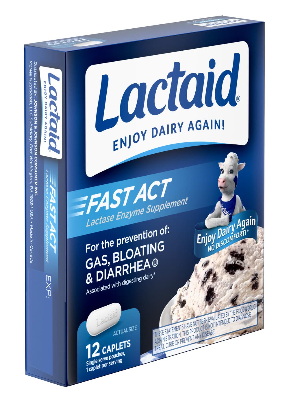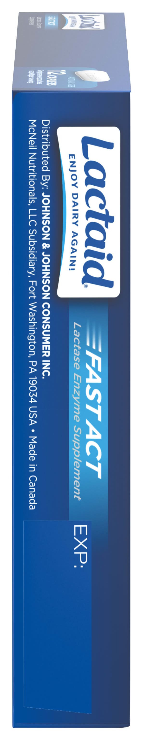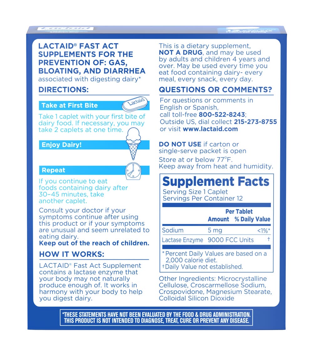 Lactaid Fast Act Lactase Enzyme Supplement Caplets (1.6 oz, 12 ct)