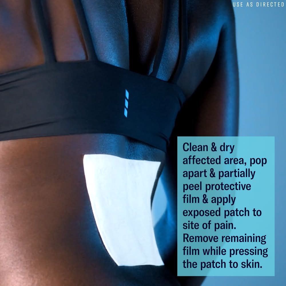 Directions: patch usage instructions: (1) remove patch from outer package. (2) partially peel back protective film. (3) place on affected area. (4) remove remaining film while pressing patch to skin. adults and children 12 years of age and older: clean and dry affected area, partially peel back protective film and apply exposed patch to site of pain. carefully remove remaining film while pressing patch to skin and leave in place for up to 8 hours. use on affected areas not more than 4 times daily. wash hands with cool water after use. children under 12 years of age: consult physician.