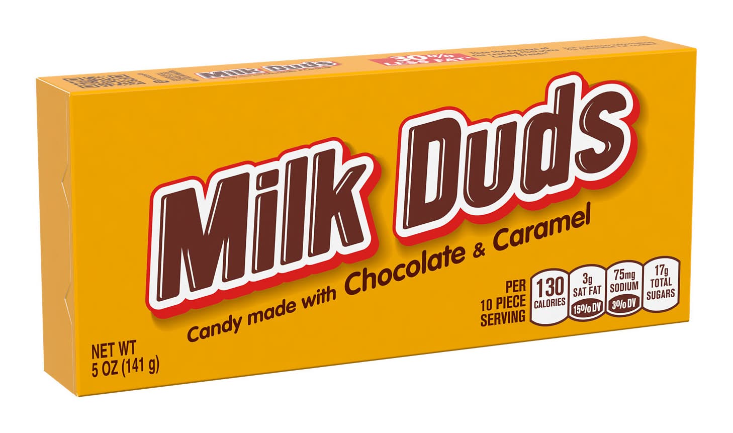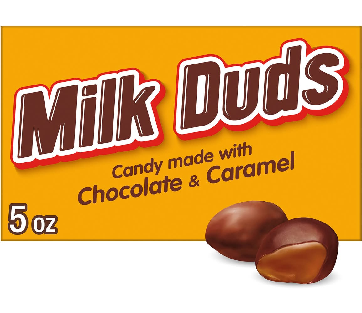 Chewy little Hershey's Milk Duds Chocolate-Coated Caramels are packed in theater-size boxes and are a fun addition to parties, events, goodie bags, and movie nights. Great for late night treats and sharing with your loved ones. The Hershey Company, Hershey, PA, 17033-0815