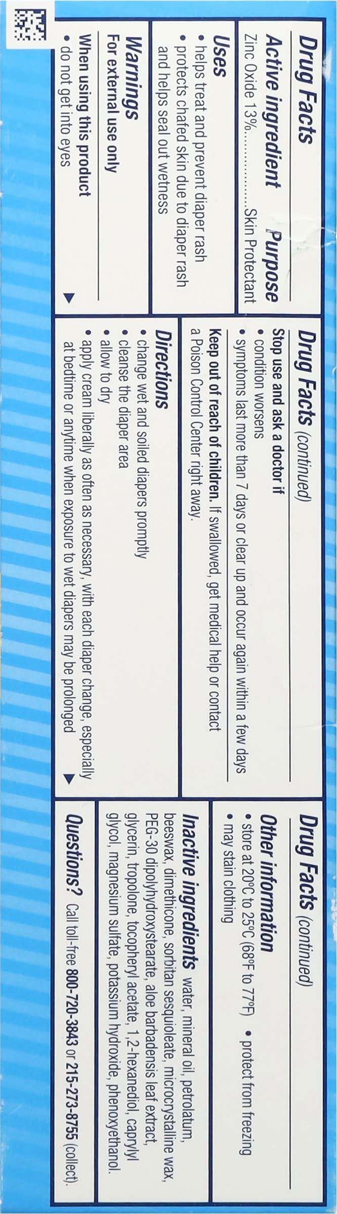Directions: change wet and soiled diapers promptly. cleanse the diaper area. allow to dry. apply cream liberally as often as necessary, with each diaper change, especially at bedtime or anytime when exposure to wet diapers may be prolonged. warnings: for external use only when using this product: do not get into eyes. stop use and ask a doctor if: condition worsens; symptoms last more than 7 days or clear up and occur again within a few days. keep out of reach of children. if swallowed, get medical help or contact a poison control center right away.