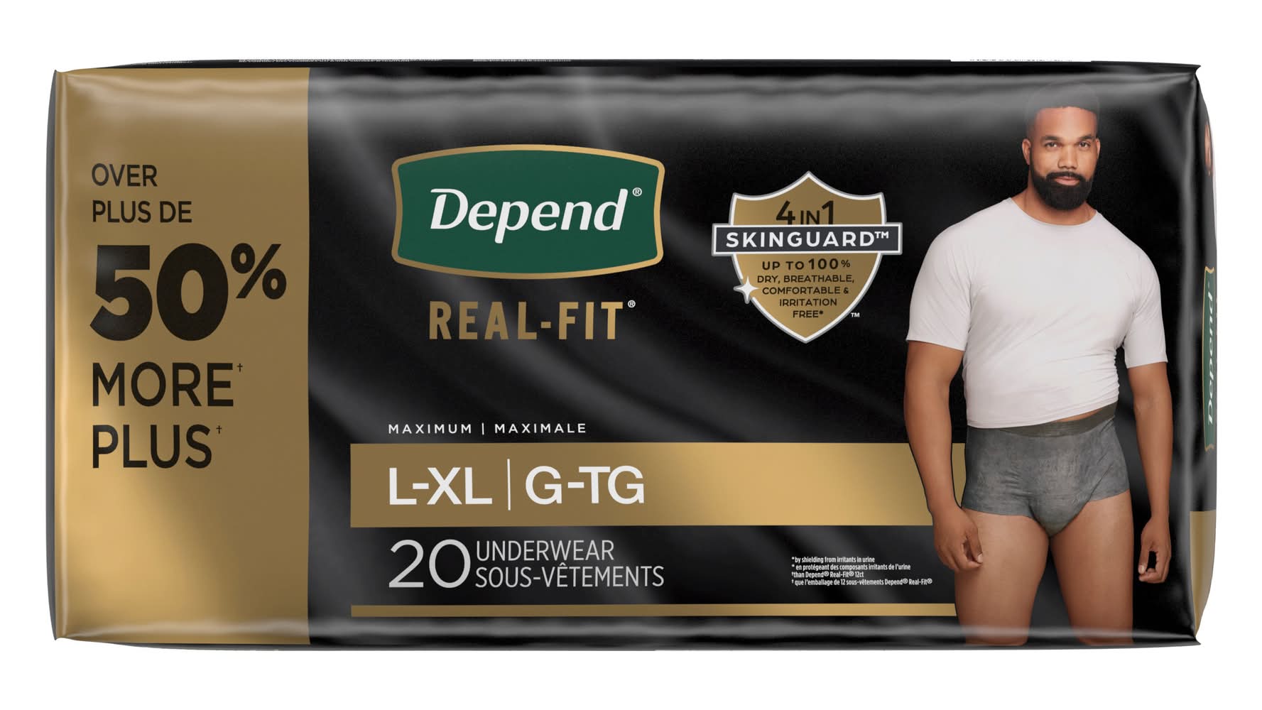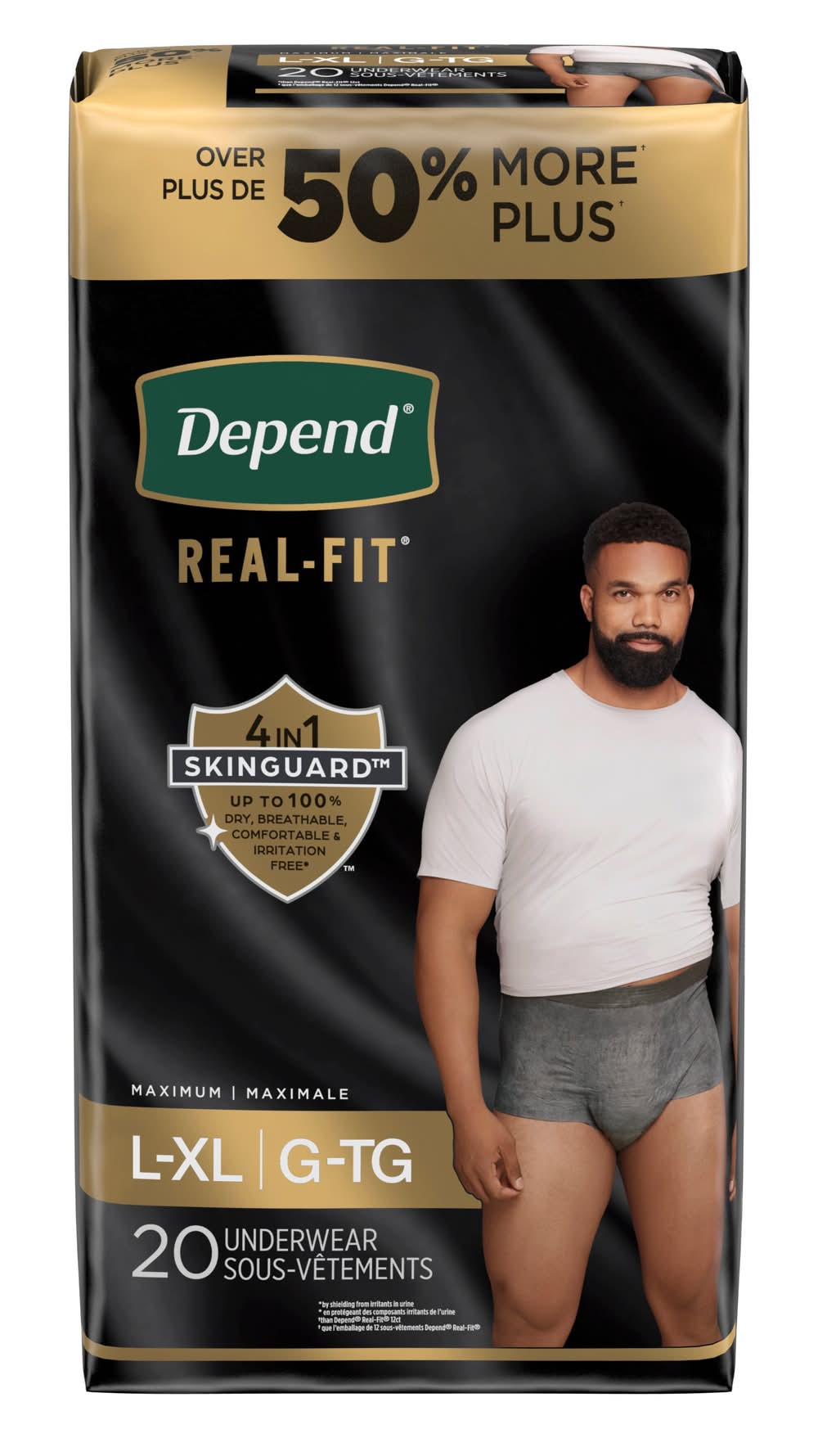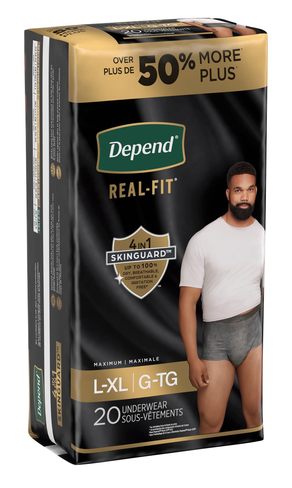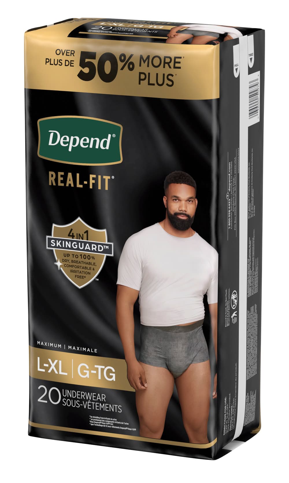Depend Real Fit Incontinence Underwear for Men, Disposable, Maximum Absorbency, Large/Extra Large, Grey, 20 Count