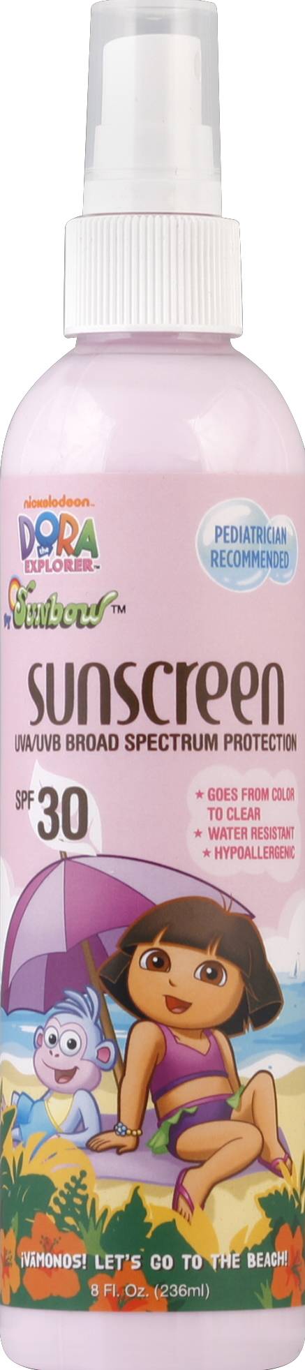 Sunscreen, Nickelodeon Dora the Explorer, SPF 30 Alcohol by volume: 30%