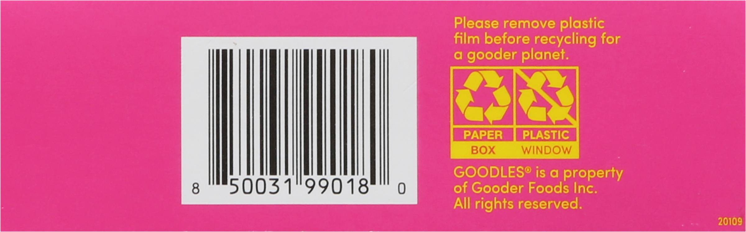 Directions for use: Directions: Cooking Directions: 1. Bring a large pot of salted water to a rolling boil (about 8 cups). 2. Add Goodles and cook 11-13 minutes or until done, stirring occasionally. 3.Drain pasta well and do not rinse. Enjoy with your favorite sauce and your favorite people. Sharing is gooder! Want it saucier? Reserve some extra cooking water before draining your Lucky Penne and add it to your sauce! Store in a cool, dry place. Storage recommendation: Store in a cool, dry place.