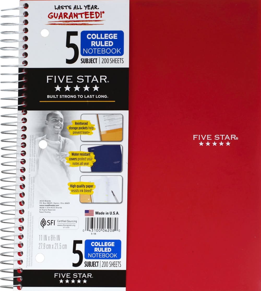 Five Star 5 Subject College Ruled Wirebound Notebook (2.01 lbs)