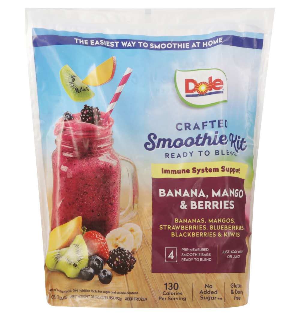 Smoothie Kit, Crafted, Banana, Mango & Berries • Flavor: • Packaging: Reusable