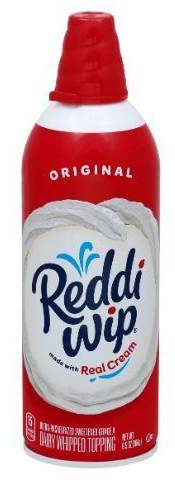 Serve up a delicious, rich cream taste with Reddi-wip Original Whipped Topping for a versatile dessert topping. The original version of this dairy whipped topping offers a creamy texture and sweet flavor you know and love. Made with real cream as the first ingredient, this whipped topping has 15 calories per serving, is gluten free and is made without hydrogenated oils, which are commonly found in other whipped topping products. Reddi-wip adds delicious flavor and excitement to countless desserts such as strawberry shortcake, pies, sundaes, milkshakes and brownies. Use for classic ice cream toppings with sprinkles. Not only is this whipped topping great for tasty desserts, but you can add some extra joy to fruit, hot cocoa and coffee, or use on pancakes and waffles for a fun kids breakfast. It also makes a delicious base for whipped frosting. Forget all the hassle of whipped cream, this spray couldn’t be easier to use. Simply shake the can, flip it over and push the nozzle down. Store Reddi-wip in the refrigerator. Whether you’re celebrating holidays with the family, enjoying breakfast or dessert after dinner, Reddi-wip Original Whipped Topping brings something special. Reddi-wip can transform any moment.