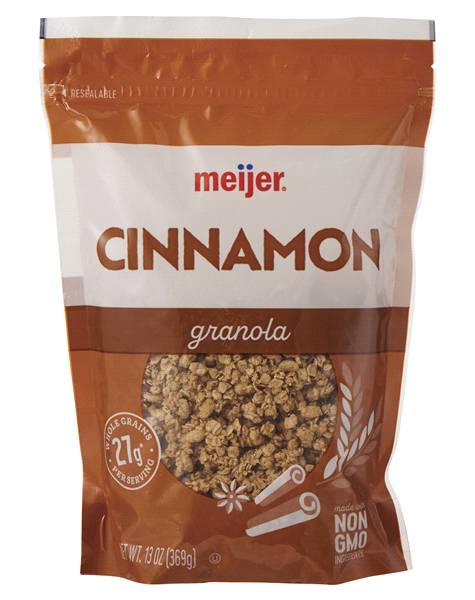 Meijer Cinnamon Granola is a versatile addition to various meals and snacks. It can be used as a topping for yogurt or smoothie bowls, added to pancakes, or consumed with milk. This granola can also be enjoyed by the handful, making it a suitable option for consumption at any time of day.