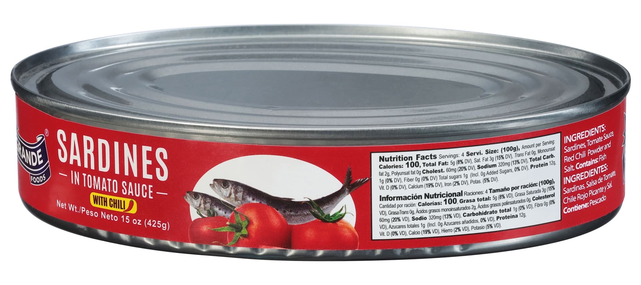 Sardines, Tomato Sauce, Red Chili Powder and Salt Contains: Fish, Sardines, Fish