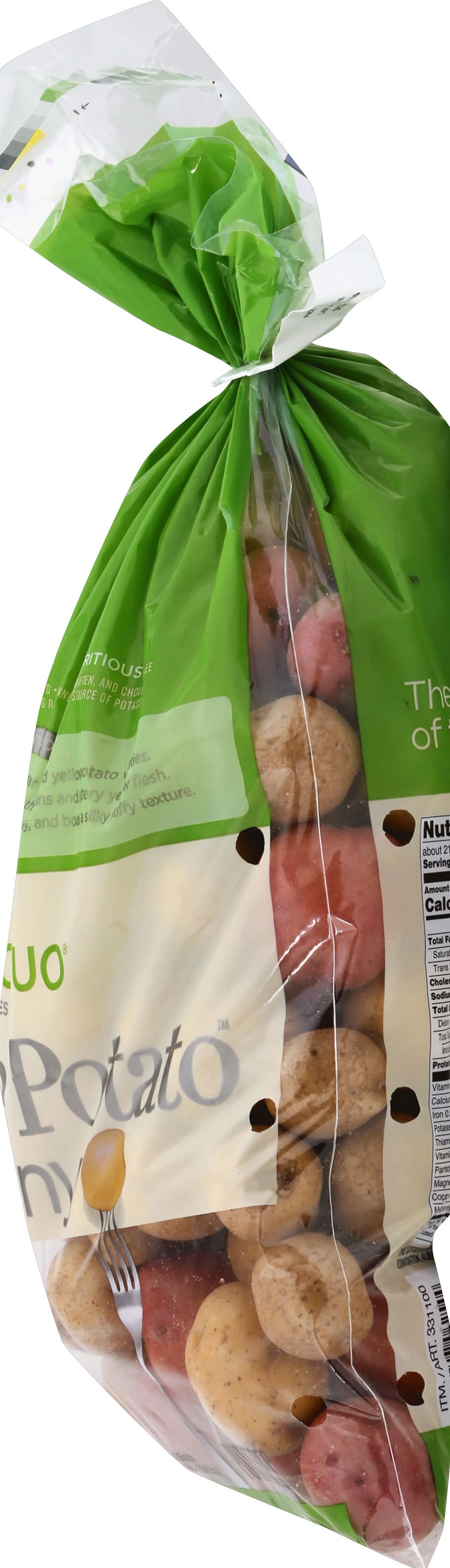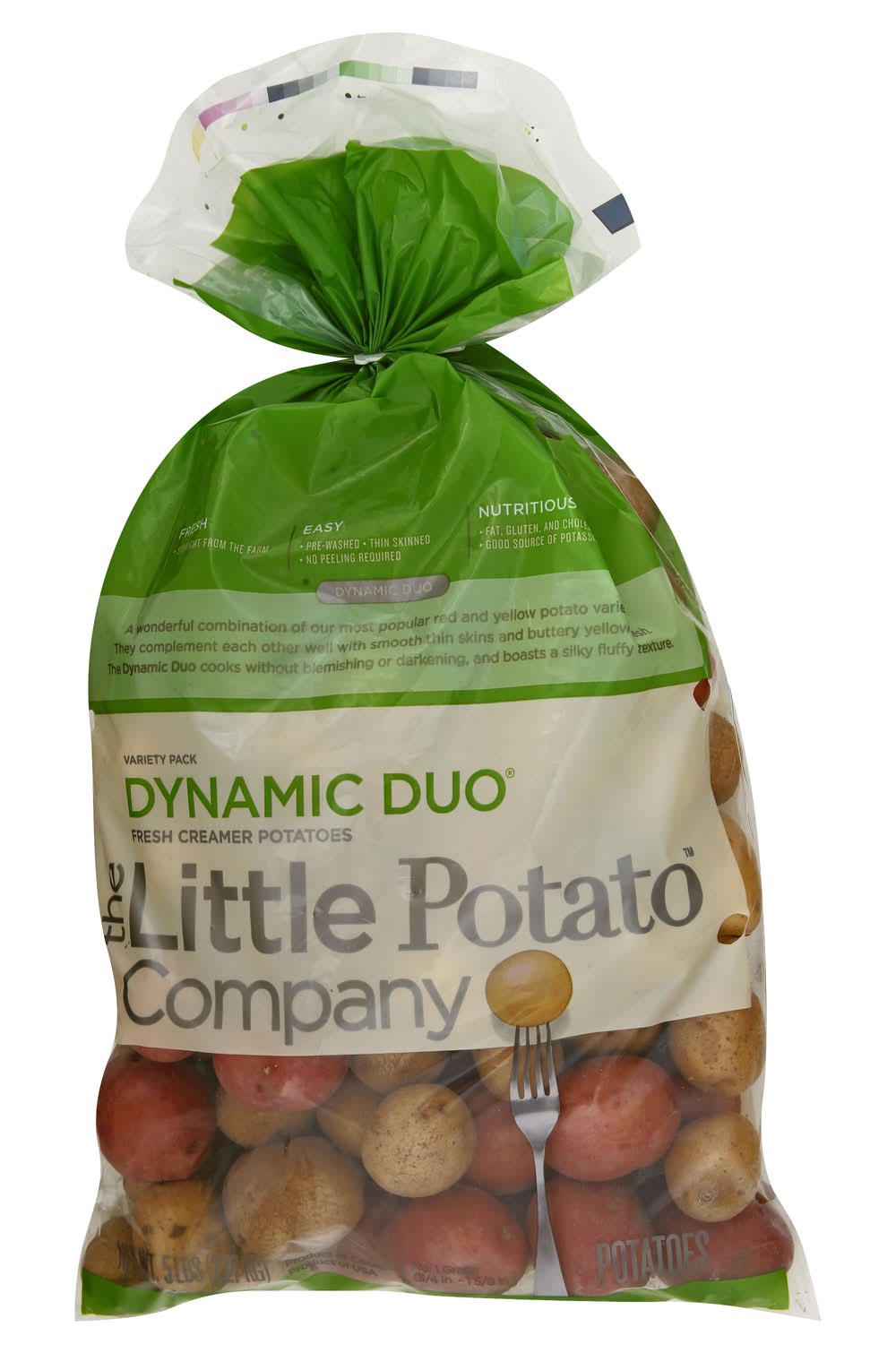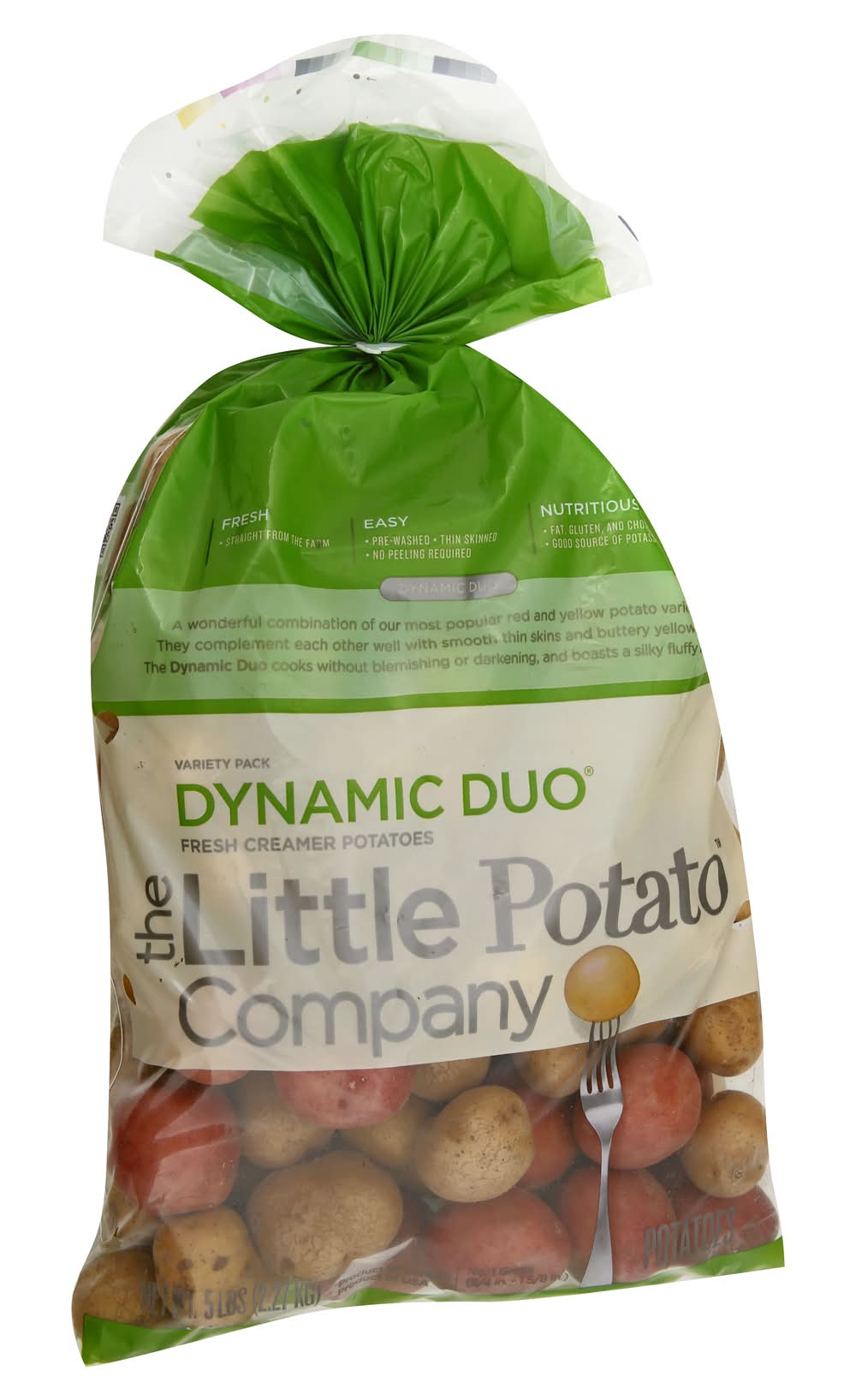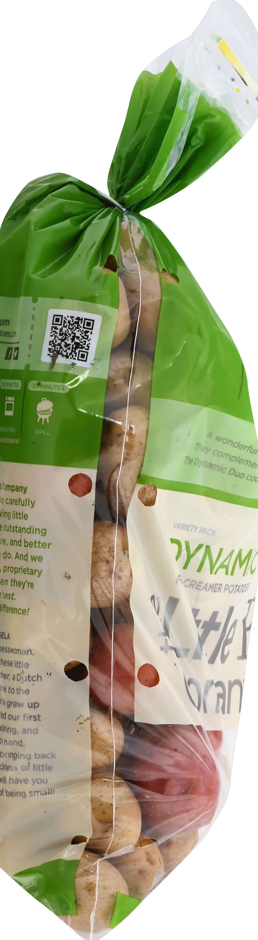A wonderful combination of our most popular red and yellow potato varieties. They compliment each other well with smooth thin skins and buttery yellow flesh. The dynamic duo cooks without blemishing or darkening, and boasts a silky fluffy texture. Fat, gluten, and cholesterol free. Good source of potassium. Fresh: straight from the farm. Easy: pre-washed; thin skinned; no peeling required. Nutritious. The creamer of the crop. The Little Potato Company is focused solely on carefully selecting and growing little potatoes that have outstanding flavors, great texture, and better nutrition. It's all we do. And we harvest our unique, proprietary potato varieties when they're mature and at their best. You can taste the difference! A message from Angela: as a mother and businesswoman, I am pleased to bring these little potatoes to you. My father, a Dutch immigrant, introduced me to the flavorful little potatoes he grew up with. Together, we planted our first acre in 1996, sorting, washing, and bagging our first crop by hand. We remain dedicated to bringing back the original, diverse goodness of little potatoes. Our potatoes will have you proclaiming the virtues of being small! Angela, co-founder and chief potato champion. Creamer potatoes? Creamer potatoes, coveted around the world by leading chefs and foodies, are a premium little potato varietal that is typically thin-skinned, rich in flavor, and highly nutritious. When it says creamer on the package, you are giving yourself the best. LittlePotatoes.com. Facebook. Twitter. For recipe ideas littlepotatoes.com. Product of Canada. Product of USA.