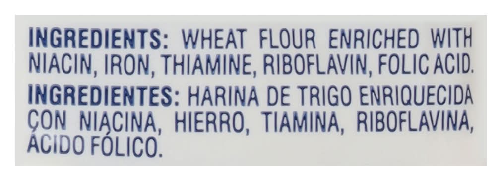 Wheat Flour Enriched with Niacin, Iron, Thiamine, Riboflavin, Folic Acid Contains: Wheat