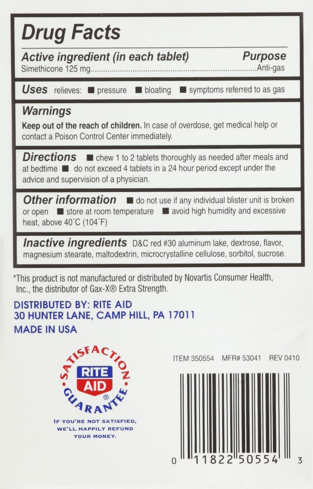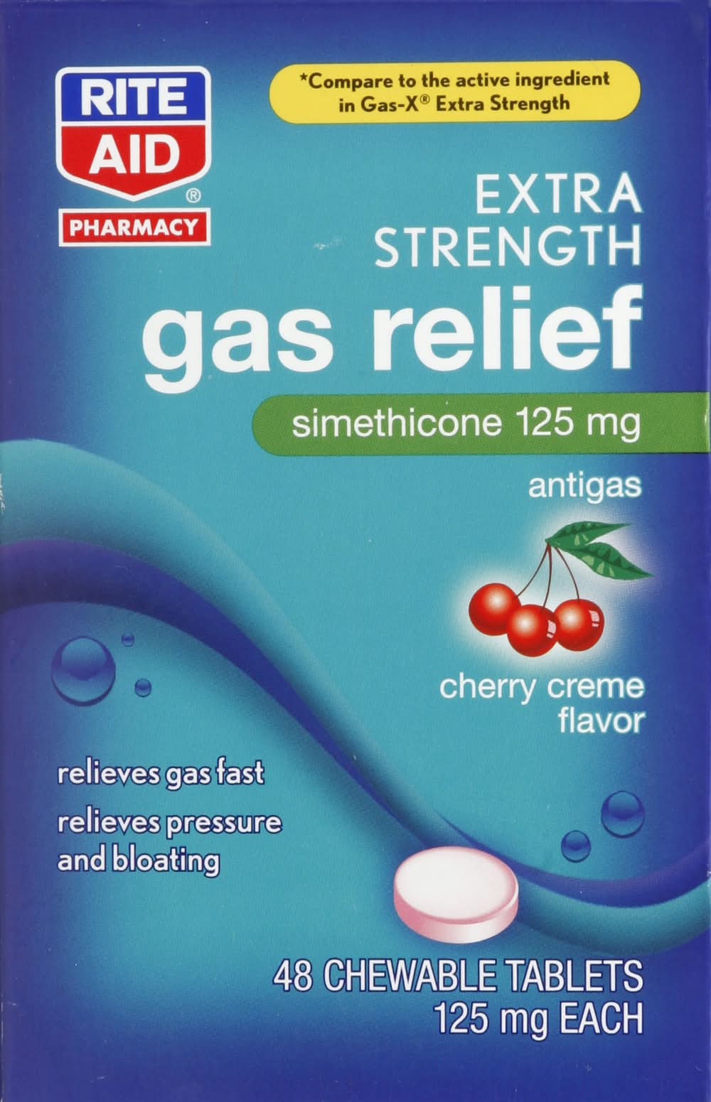 Gas Relief, Extra Strength, 125 mg, Chewable Tablets, Cherry Creme Flavor Rite Aid, 30 Hunter Lane Camp Hill, PA 17011
