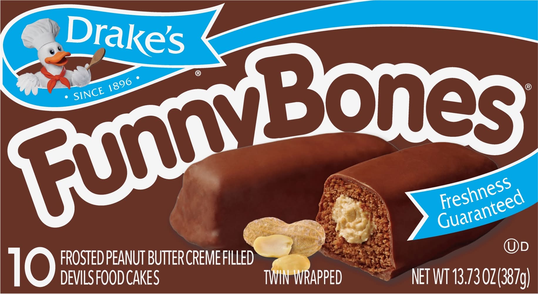 Drake's Funny Bones Frosted Peanut Butter Creme Filled Cakes (13.8 oz)