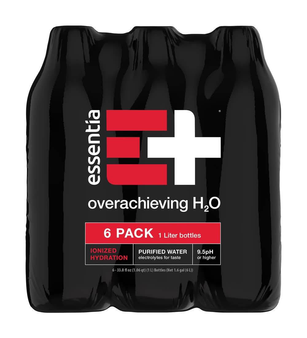 Water is Supercharged Ionized Alkaline Water so you can do the things that matter most to you and stop for nothing. Essentia’s proprietary three-step ionization process produces Overachieving H2O that’s 99.9% pure with a pH of 9.5 or higher and a clean, smooth taste. Step 1: Unwanted particles are removed through microfiltration and reverse osmosis, making Essentia 99.9% pure. Step 2: The water is infused with trace amounts of electrolytes; not just for taste, but to better complement the body’s natural mix. Step 3: Bitter-tasting acidic ions are removed, creating a high alkaline water with pH levels of 9.5 or higher. Available in a variety of sizes, Essentia Water bottles are recyclable, BPA-free plastic bottles available in cases and multi-packs. This sturdy case of six 1-liter bottles is designed to stack easily in the home, office, or personal vehicle for on-the-go hydration. • Pack size: 6 • Essentia Water, LLC, 4827 Bethesda Avenue Bethesda, MD 20814
