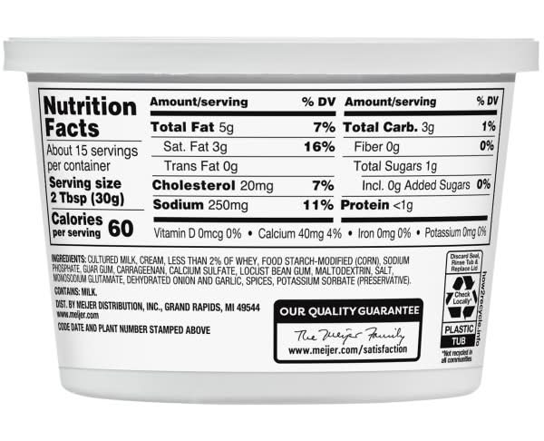 Indulge in the creamy and tangy flavors of Meijer Grade A Pasteurized Ranch Dip, crafted with real sour cream. Perfect for pairing with your choice of chips or fresh vegetables, this dip offers a rich and classic taste that enhances any snack time.