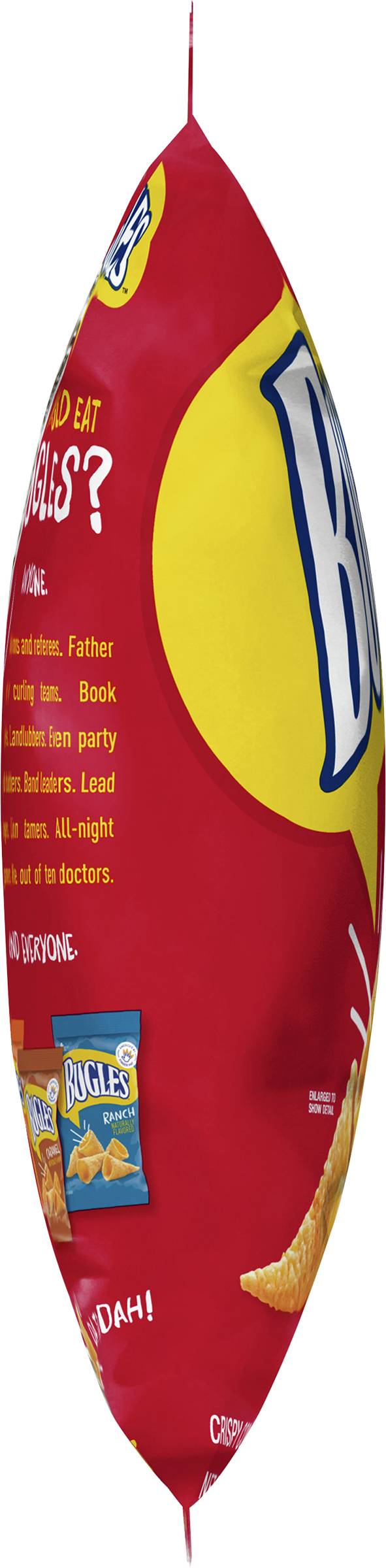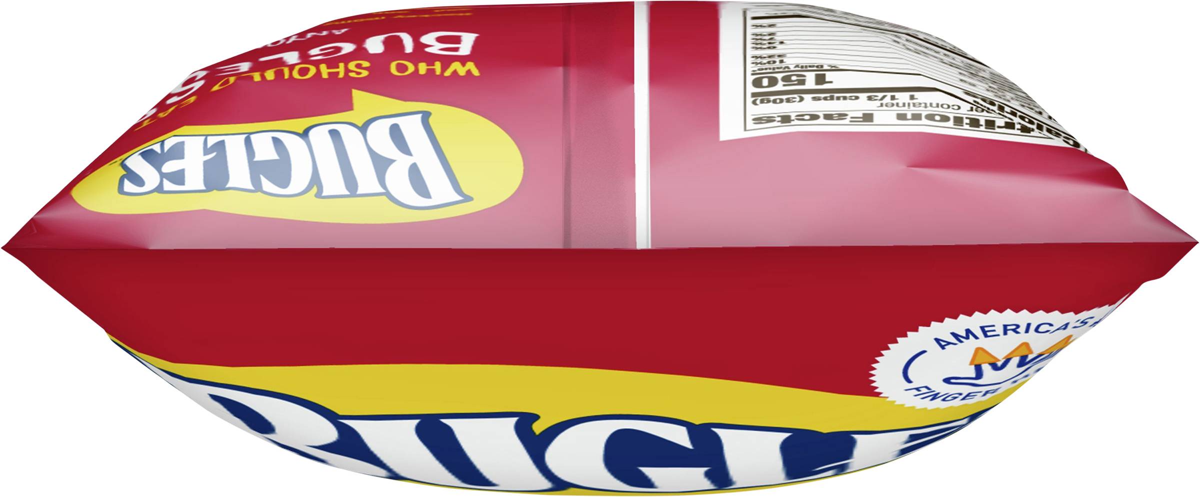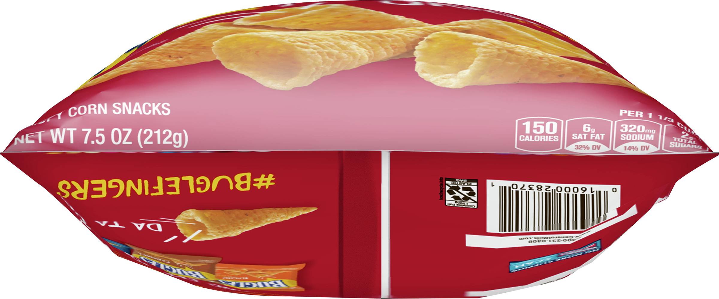 Cone shaped corn snacks. Bugles is the original, distinctive cone shaped snack with a great taste and crunch. • Flavor: • General Mills, Box 200 Minneapolis, MN 55440
