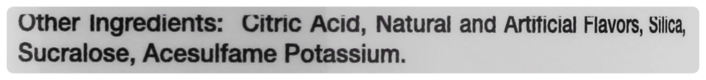 Other Ingredients: Sodium Citrate, Silica, Natural and Artificial Flavors, Sucralose, Acesulfame Potassium