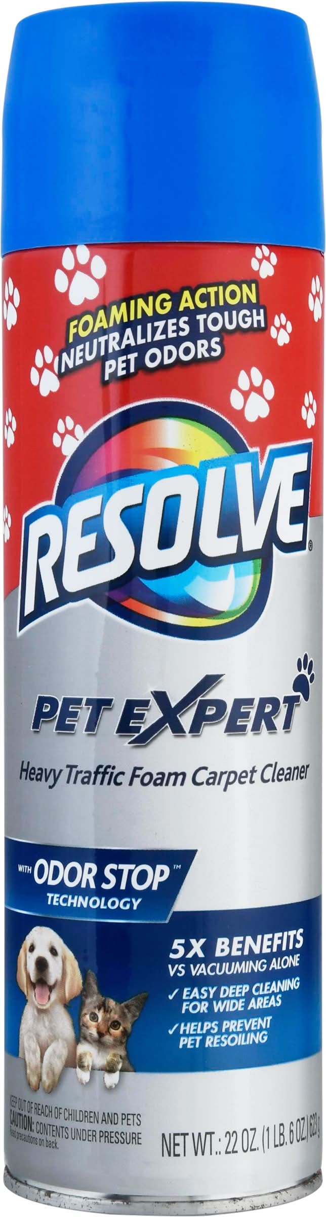 Cleans pet messes 1st time. With Odor Stop Technology: Permanently eliminates odors; Penetrates deep, removes pet stains & hair. Safe for carpets, upholstery & area rugs. Great for heavy traffic/wide areas. No. 1 carpet cleaning brand (Based on Nielsen data). Safe to use around pets (Do not spray directly on pets. Use only in well ventilated areas. Keep children and pets off carpet till dry). At Resolve, we love our furry friends as well & we understand that keeping your carpets cleans can be challenging. Resolves Pet Expert Stains & Odor Remover Foam: Protects against pet stains like urine, vomit, feces & tracked-in mud; Deep cleans and removes 3x more Pet Hair & Dirt (vs vacuuming alone); Odor stop technology to permanently eliminates odors & freshen. Resolve Pet Expert Stain & Odor Remover Foam: Carpet cleaner is safe to use on wool, nylon and stain-resistant carpet. Contains no phosphorus. Health. • Size: 22 OZ • Reckitt Benckiser., Parsipanny, NJ, 07054-0224 • Packaging: Reusable
