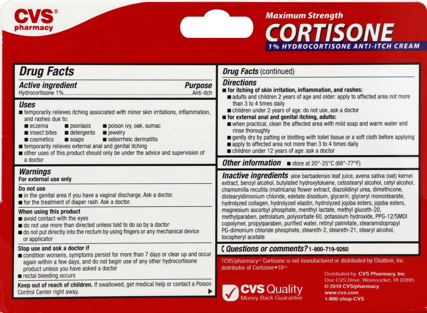 Ingredients: Active Ingredient: Hydrocortisone (1%). Inactive Ingredients: Aloe Barbadensis Leaf Juice, Avena Sativa (Oat) Kernel Extract, Benzyl Alcohol, Butylated Hydroxytoluene, Cetostearyl Alcohol, Cetyl Alcohol, Chamomilla Recutita (Matricaria) Flower Extract, Diazolidinyl Urea, Dimethicone, Distearyldimonium Chloride, Edetate Disodium, Glycerin, Glyceryl Monostearate, Hydrolyzed Collagen, Hydrolyzed Elastin, Hydrolyzed Jojoba Esters, Jojoba Esters, Magnesium Ascorbyl Phosphate, Menthyl Lactate, Methyl Gluceth-20, Methylparaben, Petrolatum, Polysorbate 60, Potassium Hydroxide, PPG-12/SMDI Copolymer, Propylparaben, Purified Water, Retinyl Palmitate, Stearamidopropyl PG-Dimonium Chloride Phosphate, Steareth-2, Steareth-21, Stearyl Alcohol, Tocopheryl Acetate