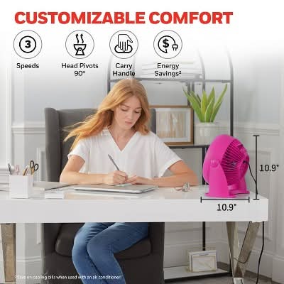 Feel the blast of the TurboForce Power Air Circulator Fan from 25 ft. away. Its 3 speed settings and 90° pivoting head are designed to work with the cooling and heating in your home to create a custom comfort zone in any season. The uniquely engineered fan blades provide quiet, powerful personal cooling that’s great on a tabletop or mounted to the wall in your home or office. With an easy-to-clean removable grille and energy saving properties, this portable fan is designed with your comfort in mind. HT900 Color: Purple