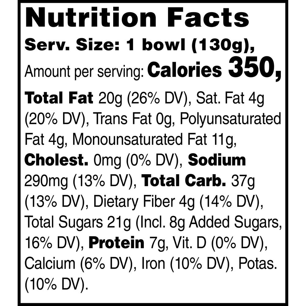 INGREDIENTS: FRUIT BLEND [FRUIT JUICE FROM CONCENTRATE (BANANA, ACAI), FRUIT PUREE CONCENTRATE (RASPBERRY, BLUEBERRY, BLACKBERRY)], ALMONDS, TAPIOCA SYRUP, WATER, SUGAR, COCONUT OIL, OATS, CANOLA OIL, BROWN RICE, SORGHUM FLAKES, GUM ACACIA, SALT, QUINOA, CAROB BEAN GUM, SOY LECITHIN, TARA GUM, GUAR GUM, NATURAL FLAVOR. Contains: ALLERGY INFORMATION: CONTAINS ALMONDS AND SOY. MAY CONTAIN MILK AND WHEAT.
