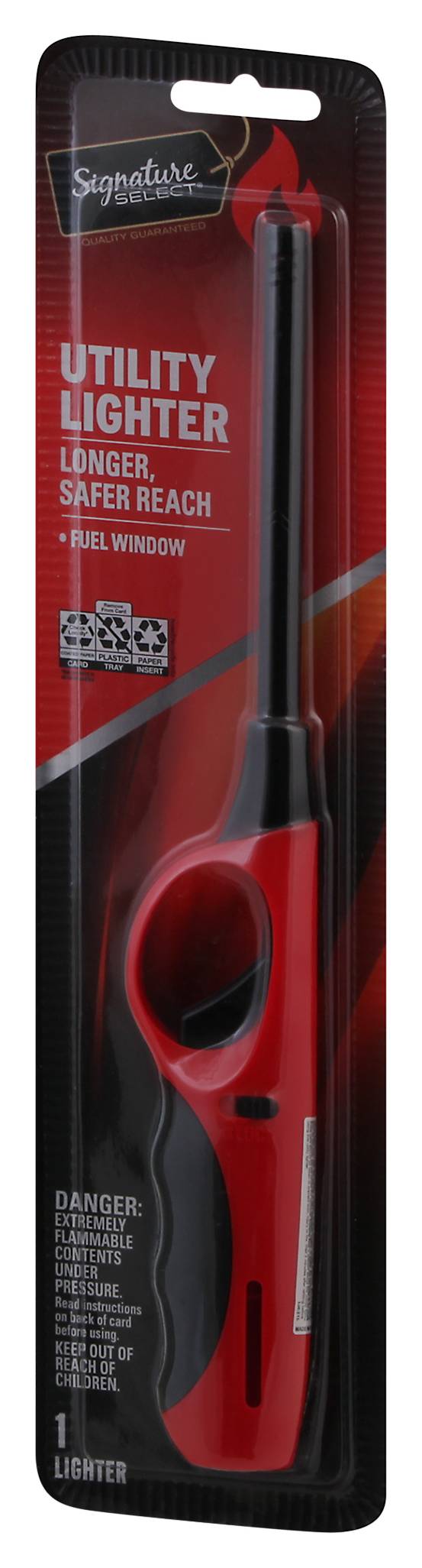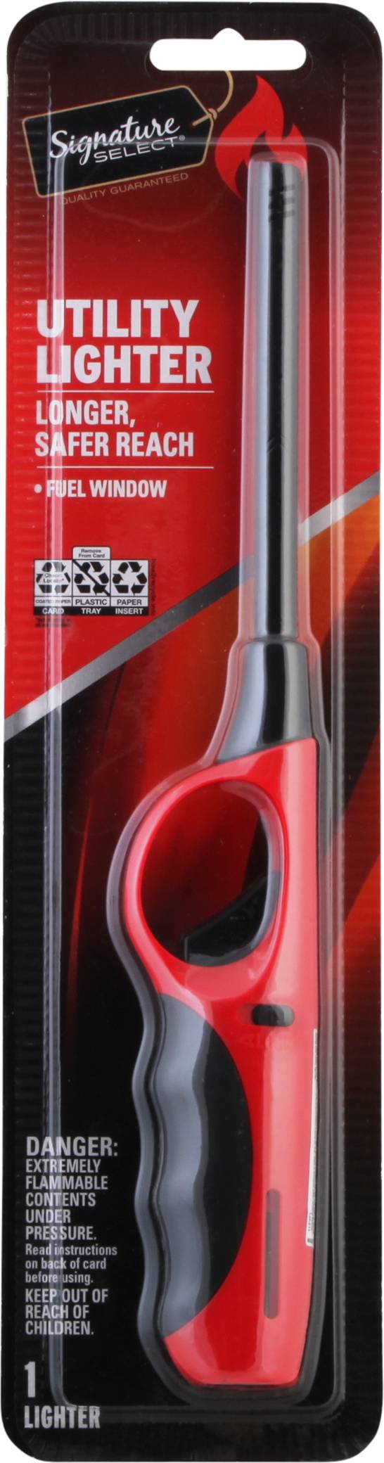Operating Instructions: Step 1: Move lock to unlock. Step 2: Pull ignition trigger with index finger. A: Lock. B: Fuel level window. Refill Instructions: Use high-quality butane gas only. Insert stem of the butane canister vertically into the tank valve on the bottom of the handle. Press the container firmly down for approximately 3 seconds, ensuring proper mating of the butane refill can to the tank valve. Repeat 3-4 times for maximum refilling. Please wait about 2 minutes before igniting the lighter to ensure butane reaches room temperature. When refilling, make sure there is no open flame nearby. Warning: Combustion (burning) of fuel can expose you to chemicals including carbon monoxide and other substances known by the State of California to cause cancer and birth defects or other reproductive harm. For more information go to www.P65Warning.ca.gov/product. Caution: Ignite utility lighter away from face and clothing. Do not use to light cigarettes, cigars, or pipes. Be sure flame is out after use. Never expose to heat above 122 degrees F (50 degrees C) or to prolonged sunlight. Never puncture or put in fire. Do not keep lit for more than 30 seconds. Wait 2 min after refilling before using the utility lighter. Contains flammable gas under pressure. Hot: Extreme heat is present above the visible flame. Extra care should be taken to prevent burn, injury or fire. Follow all instructions and warnings provided by manufacturer of appliance or any other item when using this product. Danger: Extremely flammable contents under pressure. Read instructions on back of card before using. Keep out of reach of children. Warning: Extremely flammable contents under pressure. Keep lighters and their fuels out of reach of children. Warning: Keep away from children. Danger! Extremely flammable contents under pressure. Never expose to heat above 50 degrees C (122 degrees F) or to prolonged sunlight. Be sure flame is extinguished after each use. Do not use to light cigarettes, cigars, or pipes. Do not keep lit for more than 30 seconds. Do not inhale the contents. Extreme heat is present above the visible flame. Extra care should be taken to prevent burn, injury or fire. Wait 2 minutes after refilling before using this utility lighter.