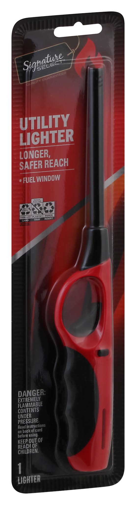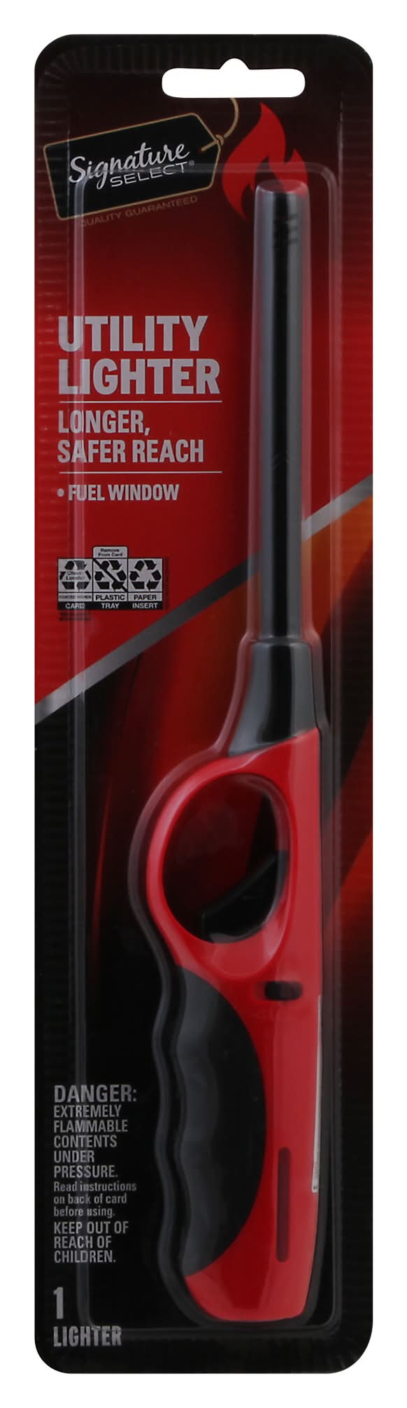Operating Instructions: Step 1: Move lock to unlock. Step 2: Pull ignition trigger with index finger. A: Lock. B: Fuel level window. Refill Instructions: Use high-quality butane gas only. Insert stem of the butane canister vertically into the tank valve on the bottom of the handle. Press the container firmly down for approximately 3 seconds, ensuring proper mating of the butane refill can to the tank valve. Repeat 3-4 times for maximum refilling. Please wait about 2 minutes before igniting the lighter to ensure butane reaches room temperature. When refilling, make sure there is no open flame nearby. Warning: Combustion (burning) of fuel can expose you to chemicals including carbon monoxide and other substances known by the State of California to cause cancer and birth defects or other reproductive harm. For more information go to www.P65Warning.ca.gov/product. Caution: Ignite utility lighter away from face and clothing. Do not use to light cigarettes, cigars, or pipes. Be sure flame is out after use. Never expose to heat above 122 degrees F (50 degrees C) or to prolonged sunlight. Never puncture or put in fire. Do not keep lit for more than 30 seconds. Wait 2 min after refilling before using the utility lighter. Contains flammable gas under pressure. Hot: Extreme heat is present above the visible flame. Extra care should be taken to prevent burn, injury or fire. Follow all instructions and warnings provided by manufacturer of appliance or any other item when using this product. Danger: Extremely flammable contents under pressure. Read instructions on back of card before using. Keep out of reach of children. Warning: Extremely flammable contents under pressure. Keep lighters and their fuels out of reach of children. Warning: Keep away from children. Danger! Extremely flammable contents under pressure. Never expose to heat above 50 degrees C (122 degrees F) or to prolonged sunlight. Be sure flame is extinguished after each use. Do not use to light cigarettes, cigars, or pipes. Do not keep lit for more than 30 seconds. Do not inhale the contents. Extreme heat is present above the visible flame. Extra care should be taken to prevent burn, injury or fire. Wait 2 minutes after refilling before using this utility lighter.