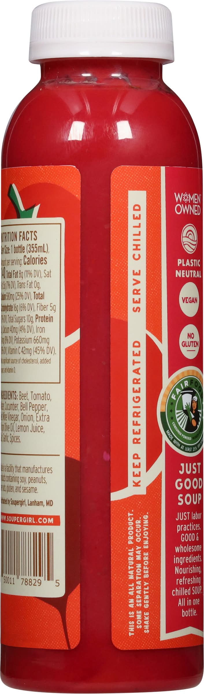 Soup, Chilled, Ready to Drink, Beet Gazpacho • Soupergirl, • Packaging: Reusable