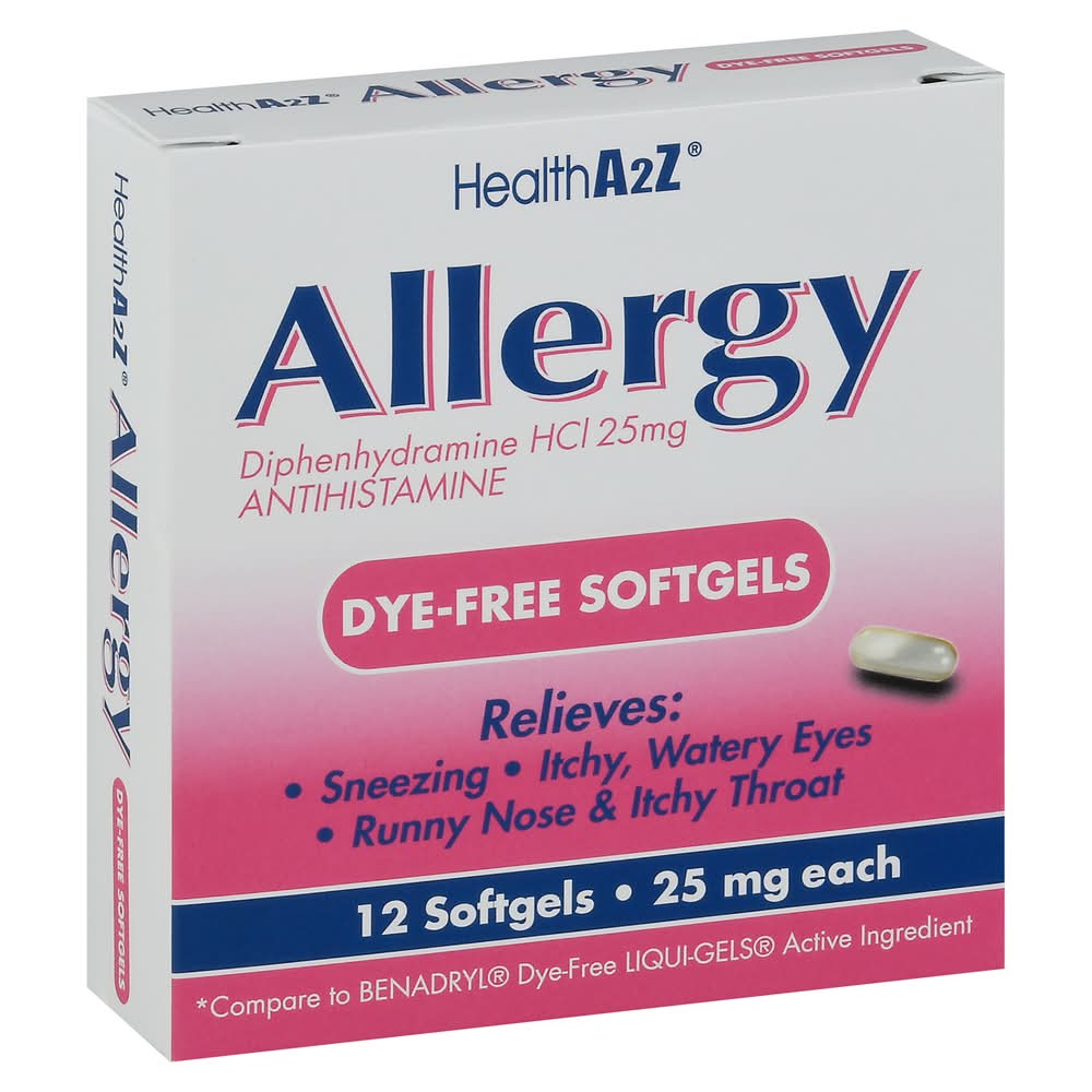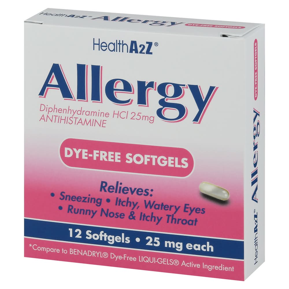 HealthA2Z Allergy Reliever Dye-Free Softgels 25 mg (0.4 oz, 12 ct)