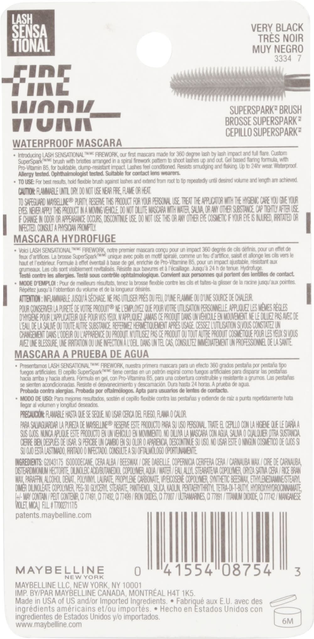 Maybelline Sensational Firework Waterproof Mascara, Very Black (0.33 fl oz)