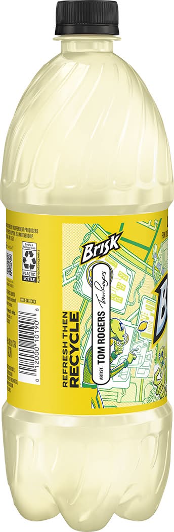 Blast your Thirst with the bold, fruit flavored taste of Brisk Juice Drinks. Available in a wide variety of great tasting fruit flavors. • Flavor: Lemonade • The Pepsi/lipton Tea Partnership, Purchase,NY,10577 • Packaging: Reusable