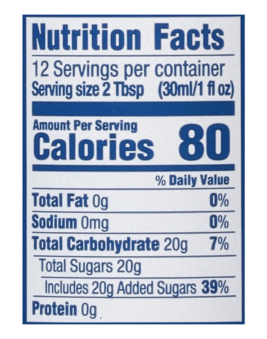 Ingredients: Pure Cane Sugar, Water, Natural Flavors, Citric Acid, Potassium Sorbate (to Preserve Freshness), Sodium Benzoate (to Preserve Freshness)