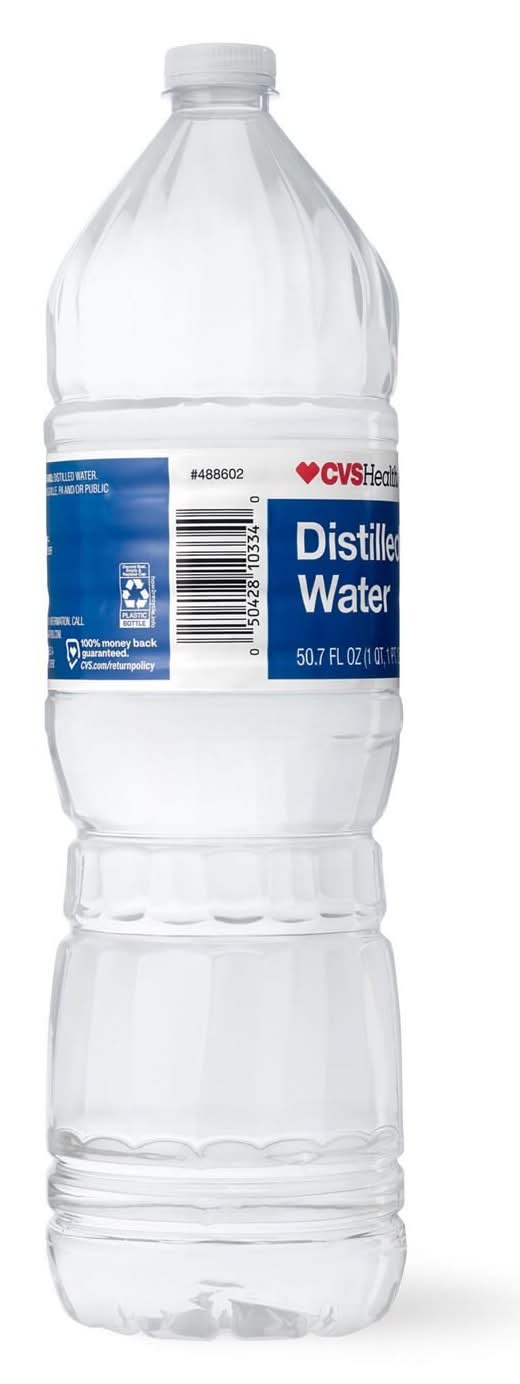 CVS Health Distilled Water is steam-distilled for purity, making it a reliable option for everything from household appliances to daily hydration needs. Sourced from protected wells or public water supplies, it's processed for consistent quality. Eating is personal. We get it! So we’ve made it our mission to meet your wellness needs with crave-worthy goodness. Taste-tested by food lovers to boost your wellbeing and better your day. Recyclable plastic bottle See packaging for complete directions and other important information prior to use 100% money-back guarantee on Our CVS Brands. If you are not 100% satisfied with a CVS Pharmacy private brand product, you can return it for free (some exclusions apply) Packaging: Reusable