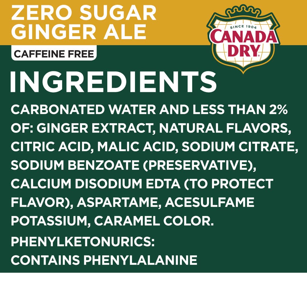 Ingredients: Carbonated Water and Less than 2% of: Ginger Extract, Natural Flavors, Citric Acid, Malic Acid, Sodium Citrate, Sodium Benzoate Preservative, Calcium Disodium EDTA to Protect Flavor, Aspartame, Acesulfame Potassium, Caramel Color.