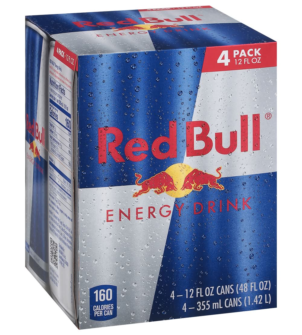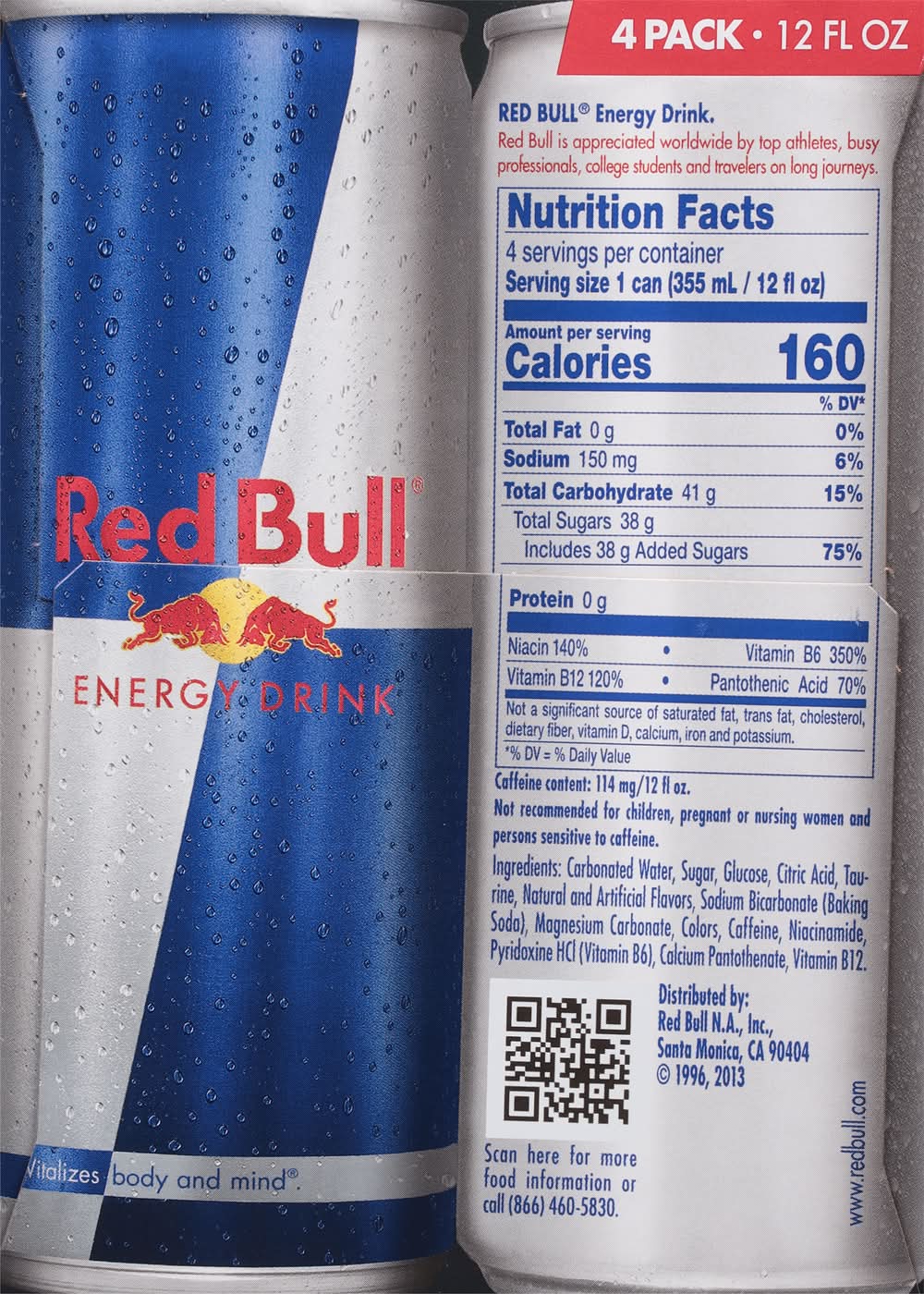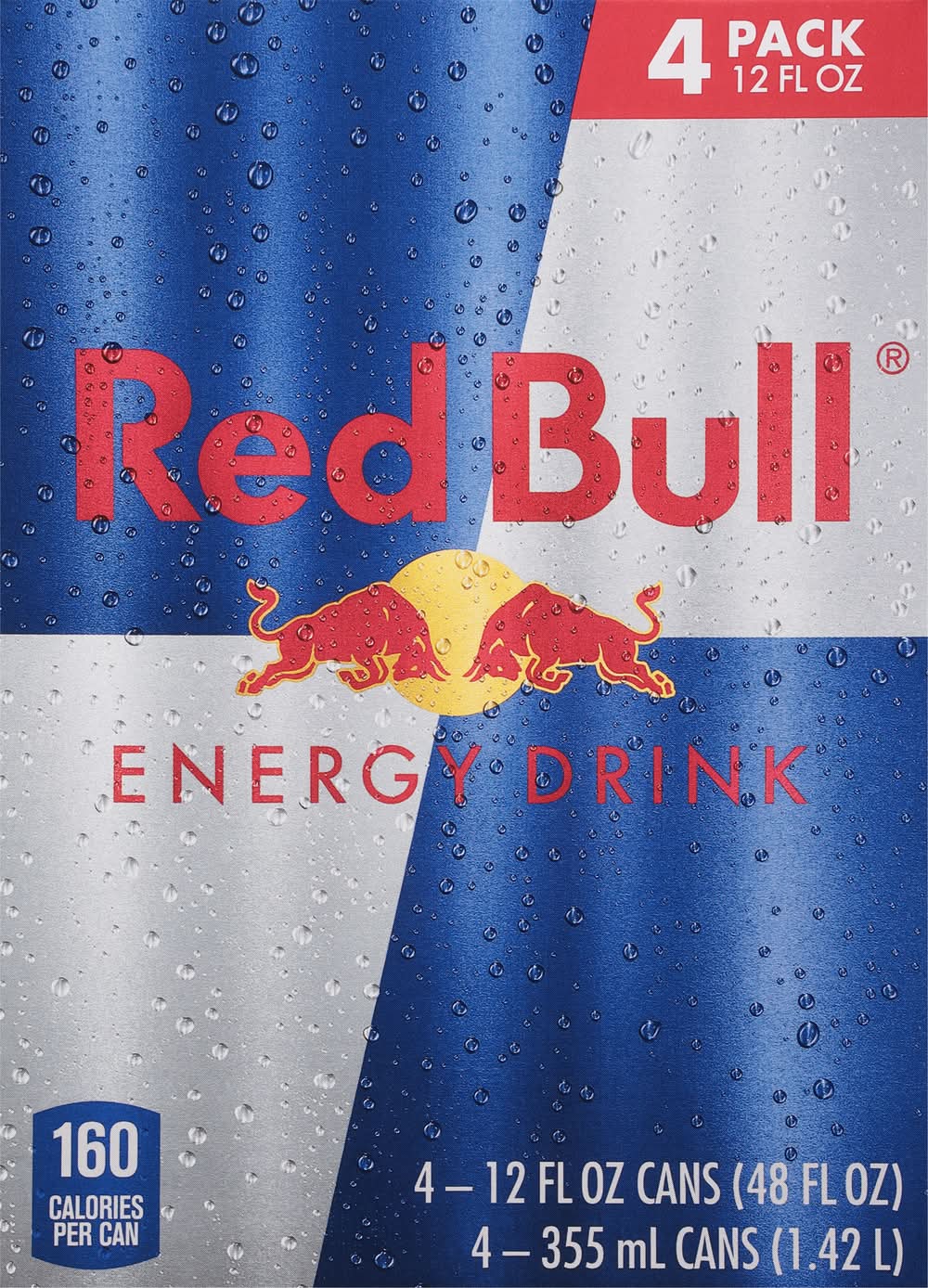 That gives you wiiings, this lightly carbonated beverage is enjoyed worldwide by fitness enthusiasts, athletes, gamers, students and travelers. A refreshing can of Red Bull makes an excellent partner for busy, active lifestyles. Each 16 fl oz can contains 151mg of caffeine per serving and 50g of sugar (comparable to sugar levels found in apple juice). It also includes Taurine, an amino acid naturally occurring in the human body, and B-group vitamins B6, B12, Niacin (B3) and Pantothenic Acid (B5). Available in 4-packs, 12-packs, 24-packs and Variety Packs. Comes in aluminum cans that can be recycled over and over. Always check can labels for the most updated product nutritional and ingredient information. Calcium and sugars values declared on labels may vary slightly depending on production locations. Always check can labels for most updated product nutritional and ingredient information. Calcium and sugars values declared on labels may vary slightly depending on production locations. • Size: 16 OZ • Packaging: Reusable