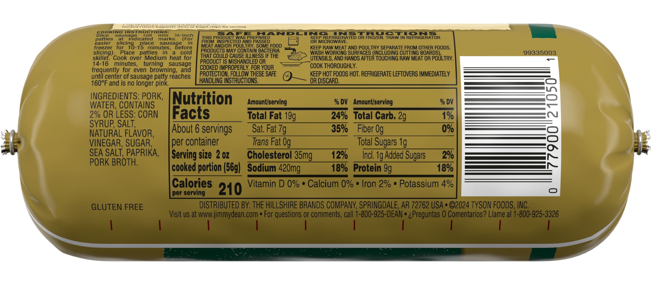Directions for use: Safe Handling Instructions: This product was prepared from inspected and passed meat and/or poultry. Some food products may contain bacteria that could cause illness if the product is mishandled or cooked improperly. For your protection, follow these safe handling instructions. Keep refrigerated or frozen. Thaw in refrigerator or microwave. Keep raw meat and poultry separate from other foods. Wash working surfaces (including cutting boards), utensils and hands after touching raw meat or poultry. Cook thoroughly. Keep hot foods hot. Refrigerate leftovers immediately or discard. Cooking Instructions: Slice sausage roll into 1/2-inch patties at indicated marks. (For easier slicing place sausage in freezer for 10-15 minutes, before slicing). Place patties in a cold skillet. Cook over Medium heat for 14-16 minutes, turning sausage frequently for even browning, or until center of sausage patty reaches 160 degree F and is no longer pink. Previously handled frozen for your protection refreeze or keep refrigerated. Storage recommendation: Previously handled frozen for your protection refreeze or keep refrigerated.