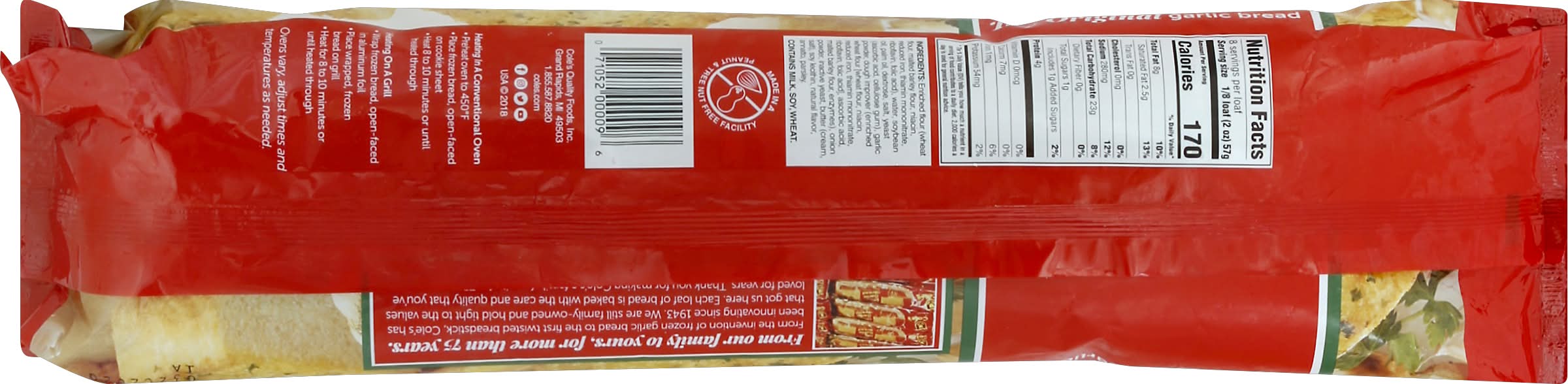 The original. Family-owned for more than 75 years Est. 1943. From our family to yours, for more than 75 years. From the invention of frozen garlic bread to the first twisted breadstick. Cole's has been innovating since 1943. We are still family-owned and hold tight to the values that got us here. Each loaf of bread is baked with the care and quality that you've loved for years. Thank you for making Cole's a family favorite for 75 years. Made in a peanut & tree nut free facility. coles.com. Facebook. Instagram. Twitter. YouTube.