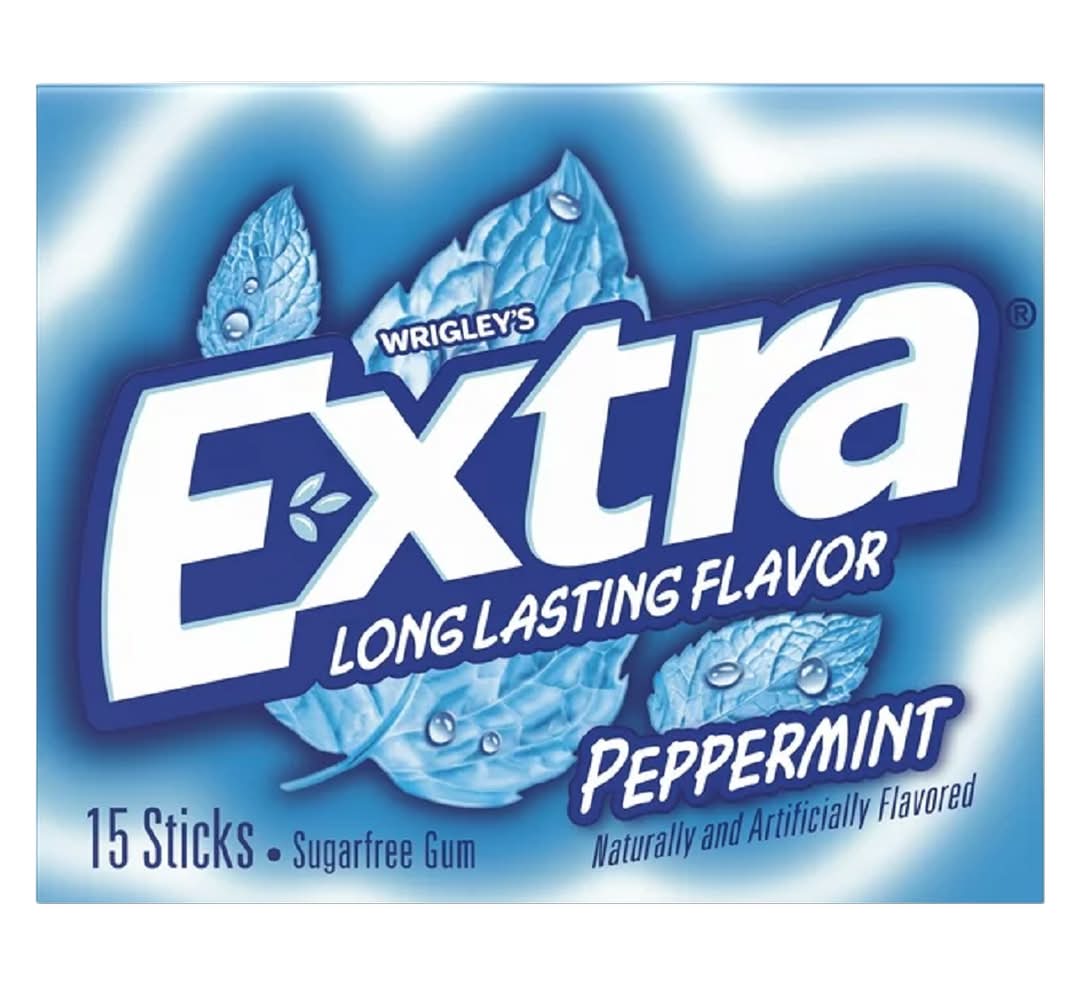 Refreshing, delicious, and cool. Give extra, get extra ‚ your mouth deserves it. • Brand: Wrigley's • Flavor: Peppermint