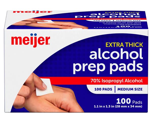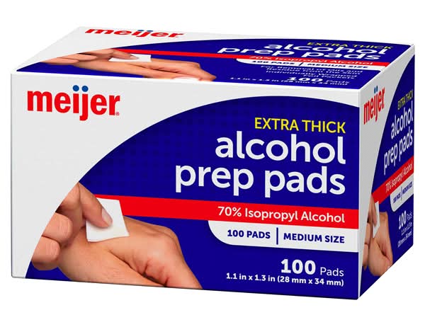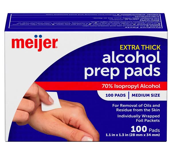 Meijer Alcohol Swabs are made with 70% Isopropyl Alcohol v/v antiseptic, designed for preparing the skin prior to injection. They are also suitable for decreasing germs in minor cuts, scrapes, and burns. Each pad is individually wrapped in a foil packet to maintain sterility and convenience.