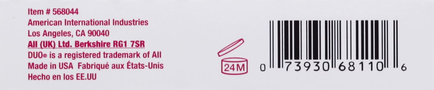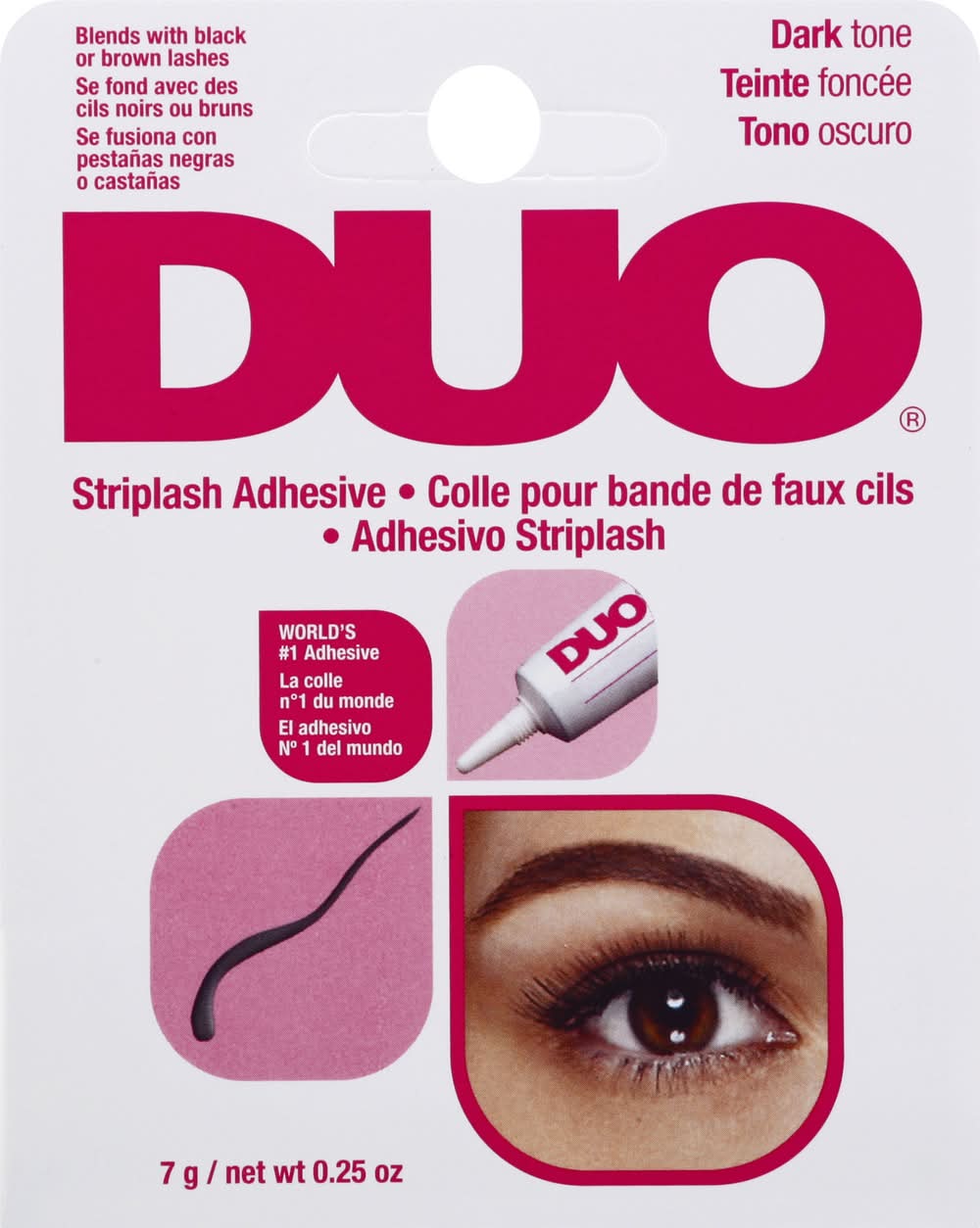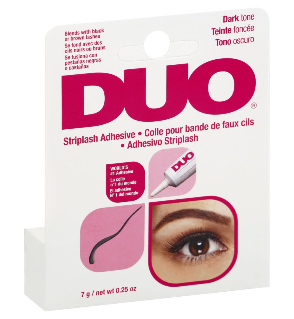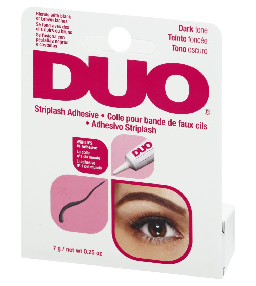 Blends with black or brown lashes. World's no. 1 adhesive. Further information included. duoadhesives.com. (hashtag)duoadhesive. (at)duoadhesive. Facebook. Pinterest. Instagram. YouTube. Join our beauty network. duoadhesives.com. Made in USA.