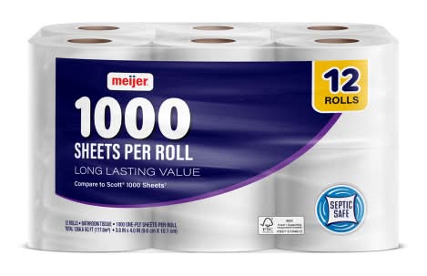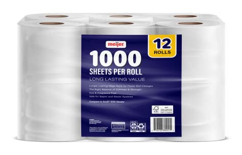 12 Regular Sized 1000 Sheet 1-Ply Rolls