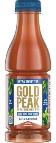 Gold Peak Extra Sweet Tea Bottle, 18.5 fl oz • Size: 18.5 OZ • The Coca-Cola Company, Atlanta-GA-30313 • Packaging: Reusable