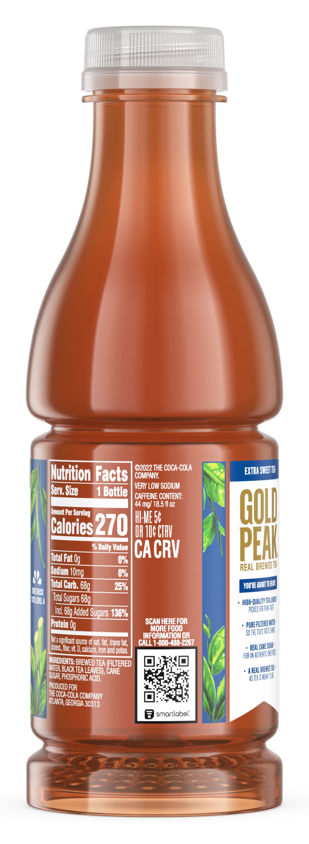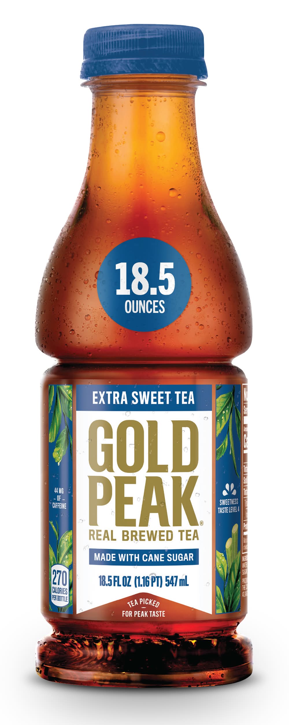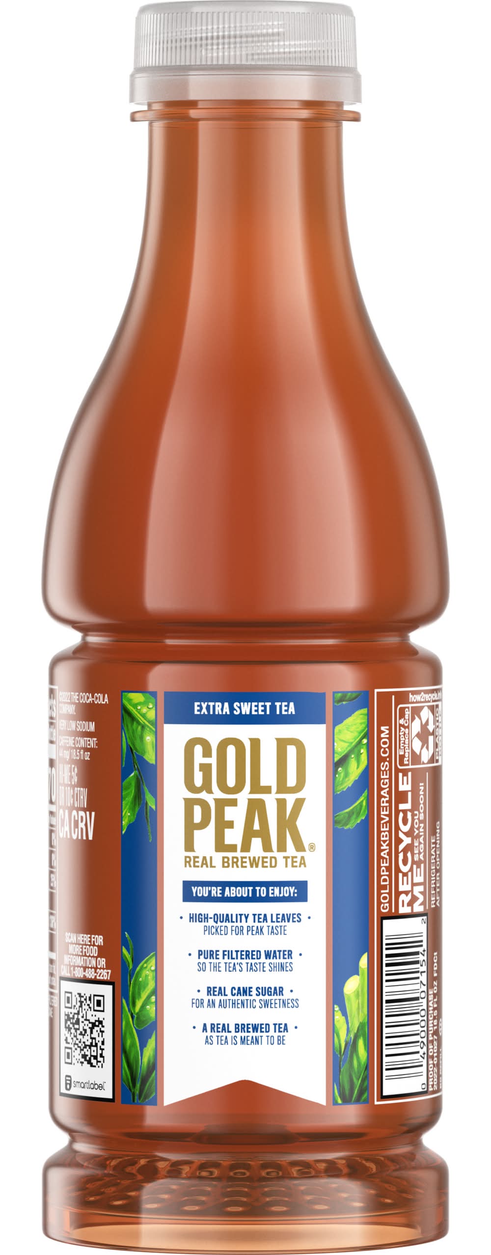 Gold Peak Extra Sweet Tea Bottle, 18.5 fl oz • Size: 18.5 OZ • The Coca-Cola Company, Atlanta-GA-30313 • Packaging: Reusable